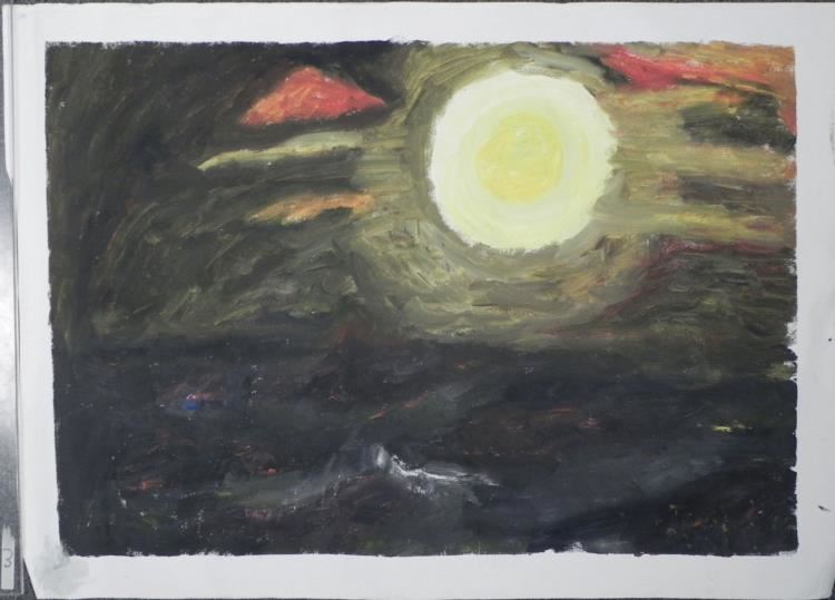 This glowing moon appears so bright, one might mistake it for the sun, but it is clearly in the darkness of the night. Artist: Maestro Tanjianji Signature: In yellow paint, lower right Medium: Acrylic on canvas Canvase size: 28 x 39 inches Year: 2013 Condition: Excellent; has been stored rolled, canvas shows some curling which can be flattened Biography: Tanjianji was born in lianyuan Hunan province in 1964 , graduated from ChongQing University in 1988 and got Master Degree . Vice Chairman of China Art Celebrity Association, honorary president of the International Famous chinese Calligrapher Exchange Show Association , Academician of China Painting and Calligraphy Academy. He got following title of honour : International Painting and chinese Calligraphy Maestro,The Chinese calligraphy top ,One of the world's most influential Chinese calligraphic works and paintings , Famous contemporary artist,Poetry leader . His opus got: special awards of chinese contemporary artists exhibition, special awards of wind of china" International Painting and chinese Calligraphy Contest and other Painting and chinese Calligraphy National Contest Gold Medal 91 times, the first award 18times.On the china biggest art web site "Tanjianji chinese Calligraphy "have been watched total 2108000 times!(you can enter follow site to check (http://blog.artron.net/space.php?uid=569483 )His original creation of "Dragon long life" calligraphy got gold medal of Famous chinese Calligrapher art treasure International Show His opus was 109 Times collected by Fashion Contest Show reel such as <china famous="" contemporary="" artist="" classics="" leido=""> . His Ink Abstract painting has been in The exhibition Louvre, France . His opus is Evaluated at USD9000 per square chi(equal USD10800 per square foot) in international market by China Famous contemporary artist evaluation association(See attach ) . His opus was aucted by USA Amauction, Inc.,Canada IEGOR auction, Hong Kong Chaters auction limited and one of the biggest aucton co.in china ----Jian Su wanda auction co. etc. His opus are collected by the world collector,and the big co. president in the world</china>