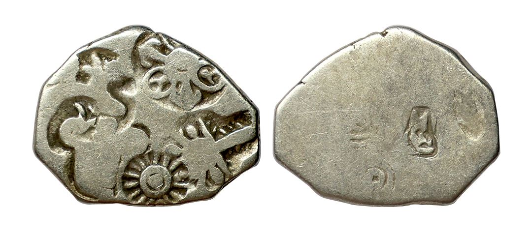 Magadha Imperial Series III, Silver Karshapana, 3.13 gms, Gupta & Hardaker Series III #305, very fine.