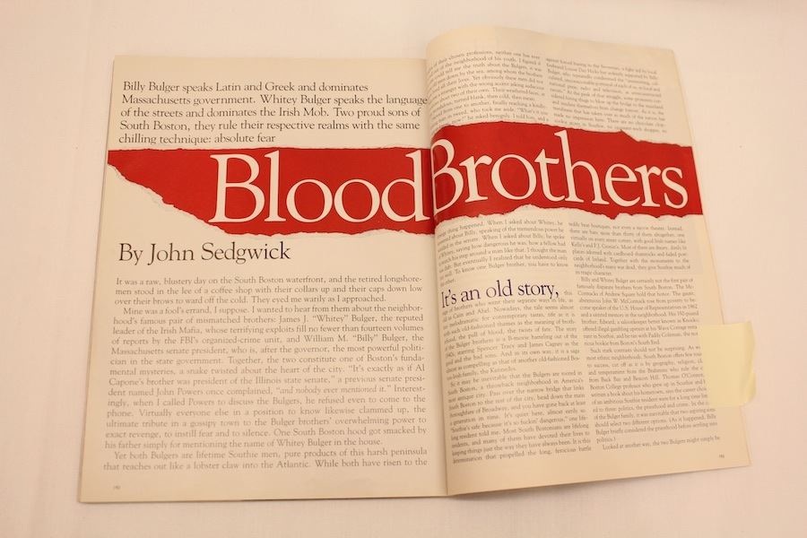 Magazine-GQ May 1992 - pgs 192-200 Article about Bulger BrothersBook-Breaking the Mob - Highlighting and Underlining throughout, sticky notes as bookmarks, Vehicle lease report dated 7/6/06Magazine-Dog Fancy Magazine-Dog Fancy. ** Personal Asset Formerly Belonging to James "Whitey" Bulger or Catherine Greig. Item(s) must be picked up and removed from the Boston Convention & Exhibition Center by 5:00 P.M. EST on Sunday, June 26th.