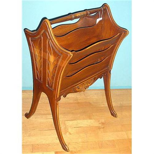 This magazine rack is made of solid walnut and nicely carved. It has smooth fluid lines and would be a good accent for a waiting room.