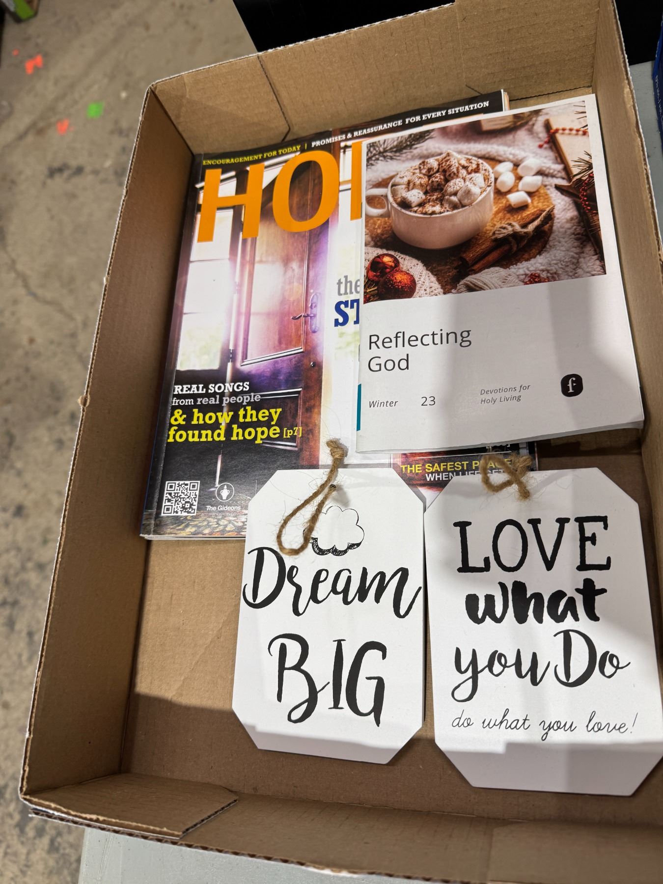 Magazines and sign