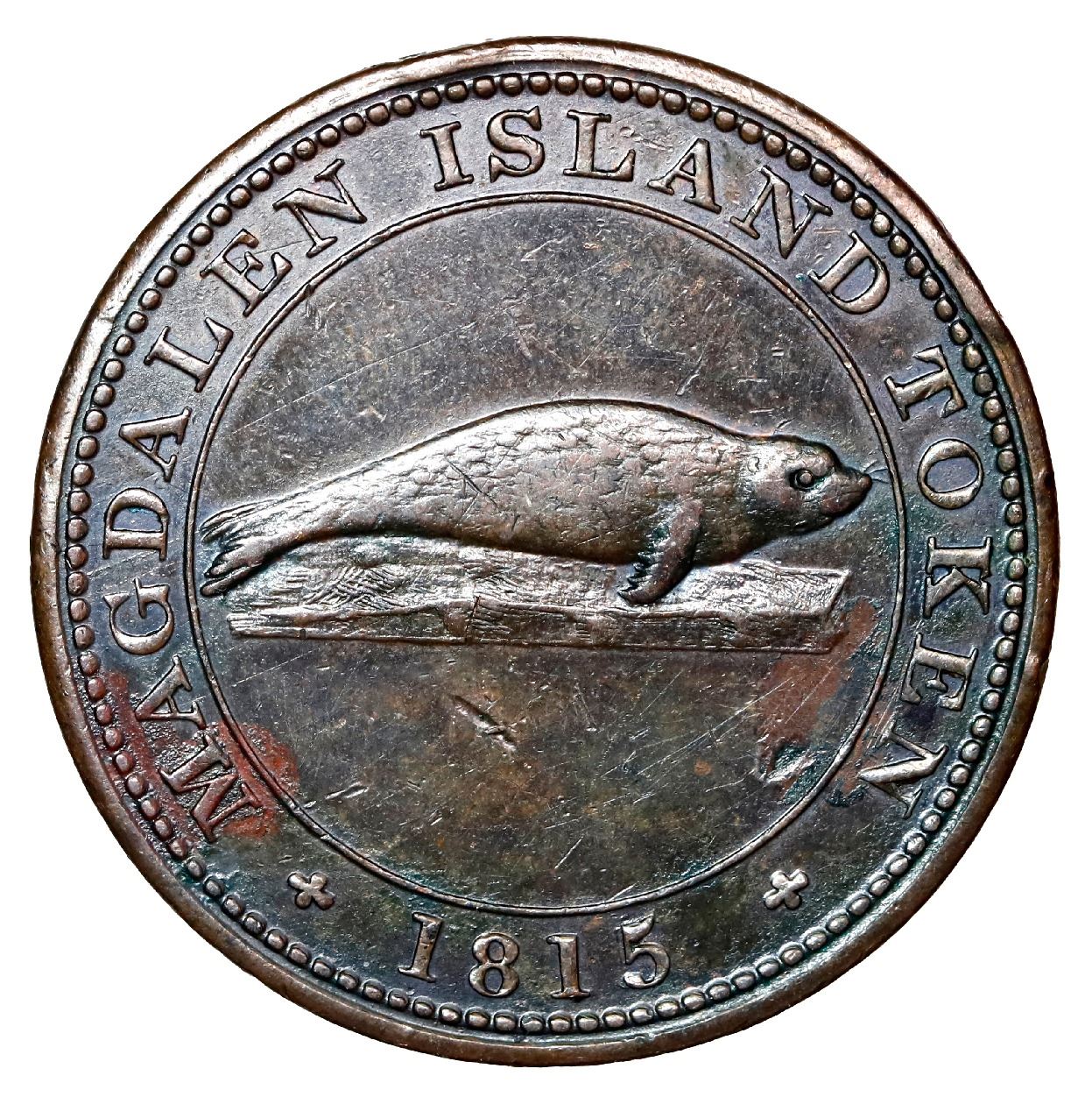 Magdalen Island, Lower Canada (struck in England), copper "seal" 1 penny token, 1815, struck from Pr