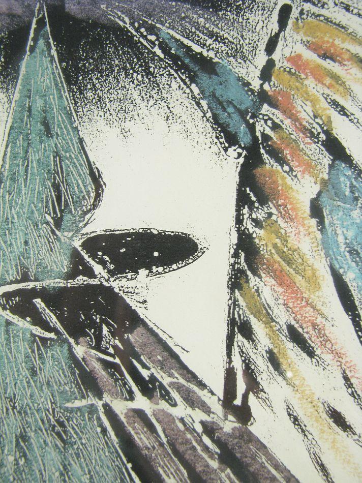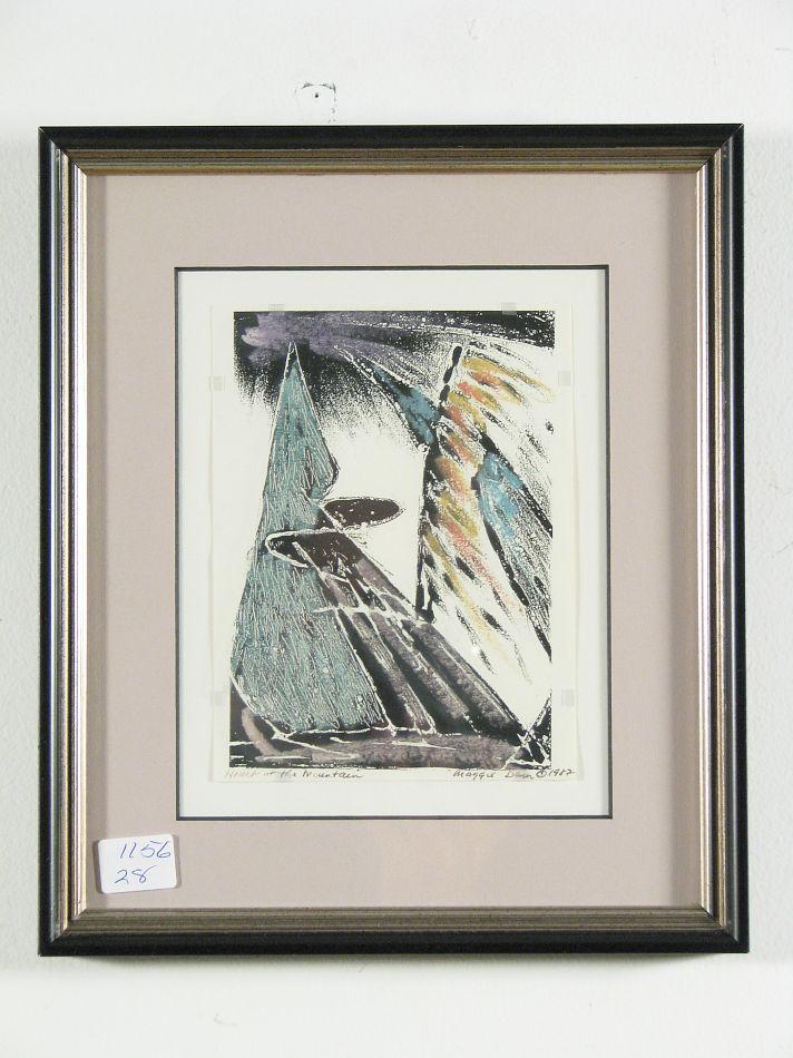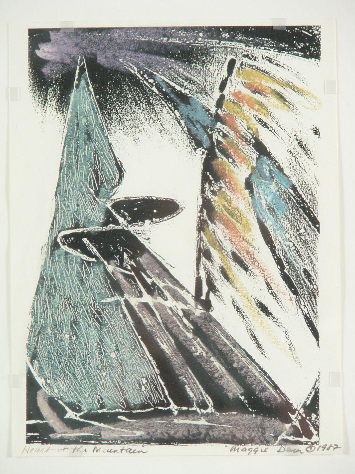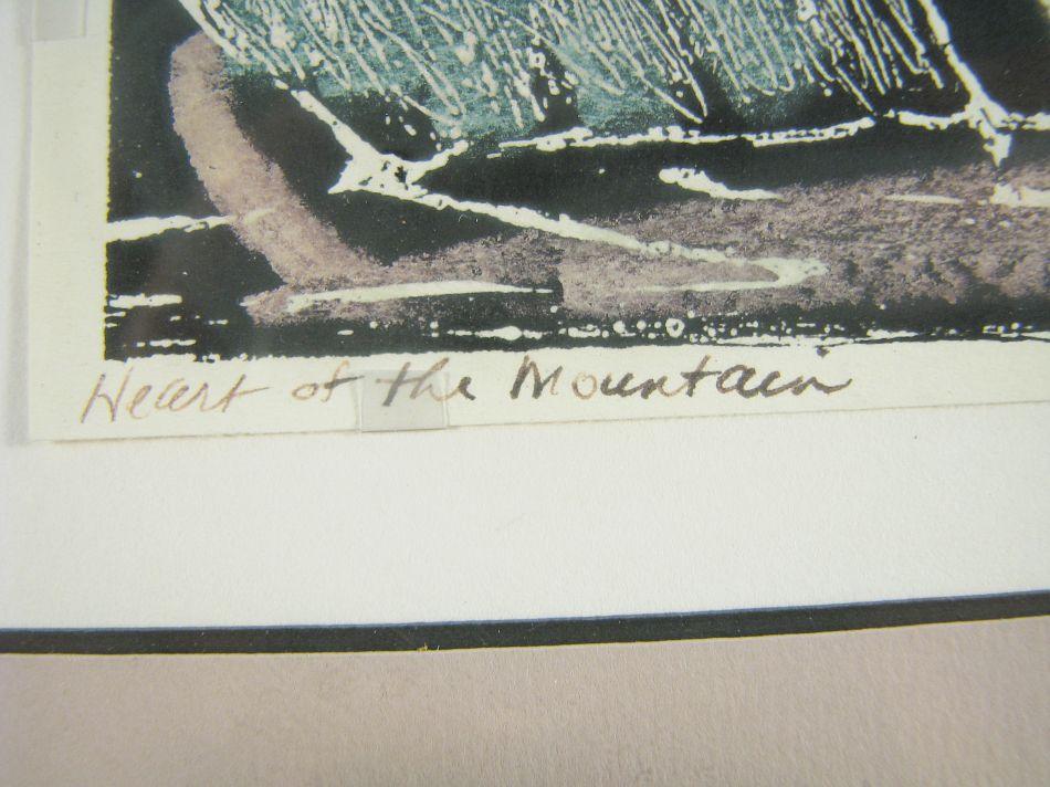 Maggie Davis (20th Century) Heart of the Mountain Hand colored woodblock print,