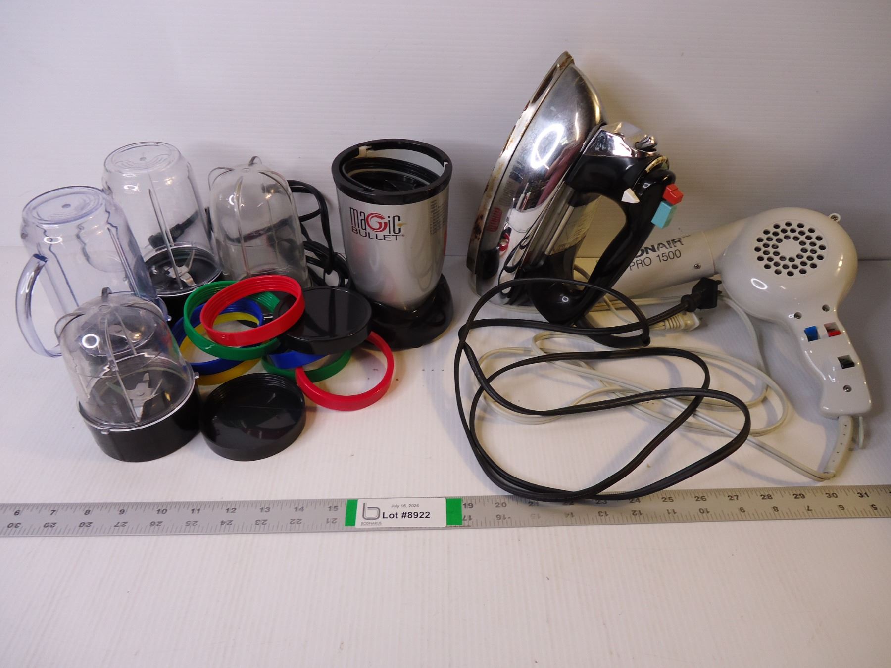 Magic Bullet (complete, untested),Iron(working) and Hair Dryer (working)
