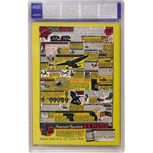 <B>Magic Comics #1 (David McKay Publications, 1939) CGC VF/NM 9.0 Off-white to white pages.</B></I> Henry gets the full cover treatment, Mandrake gets a blurb, and Blondie gets none of the above, but she does indeed appear in this issue! The book is a Gerber "scarce." Overstreet 2007 VF/NM 9.0 value = $2,922; NM- 9.2 value = $3,900. CGC census 6/07: 2 in 9.0, none higher.<BR><BR><b>Shipping:</b> Comics - Slabbed (certified) (<a target="_blank" href="http://www.heritageauctions.com/common/shipping.php">view shipping information</a>)