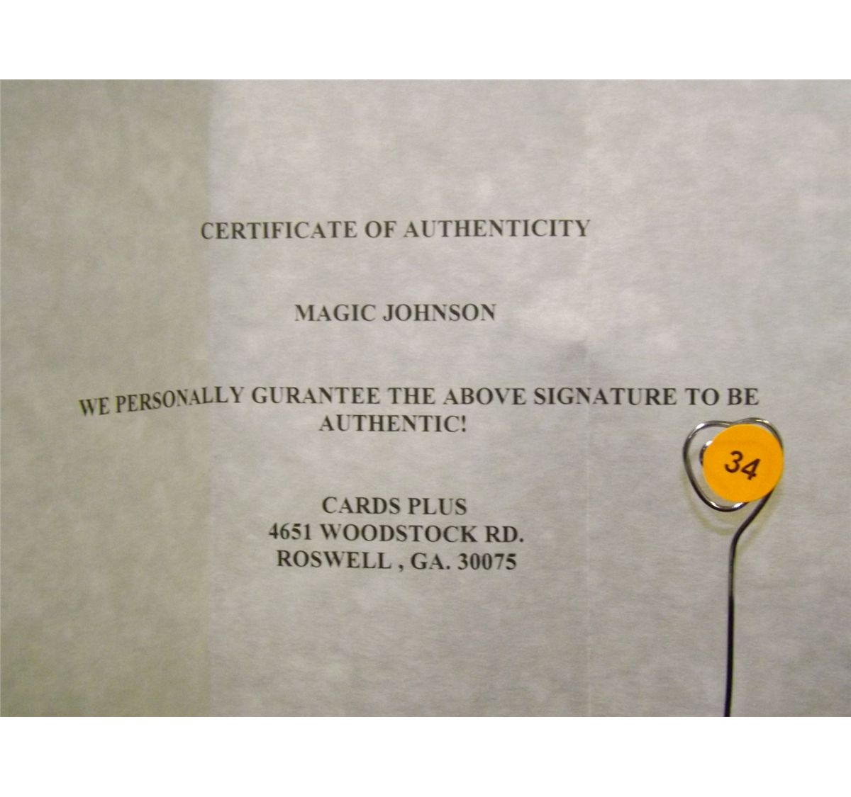 Magic Johnson Autographed Photo. 8x10 Color Photo. Appraised or estimated retail value $350. COA by Cards Plus. All Sales Final. Please see terms and conditions of auction.