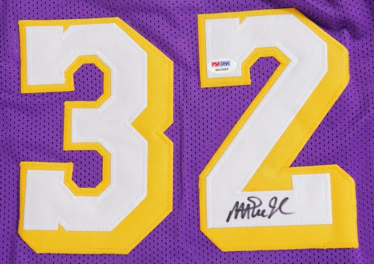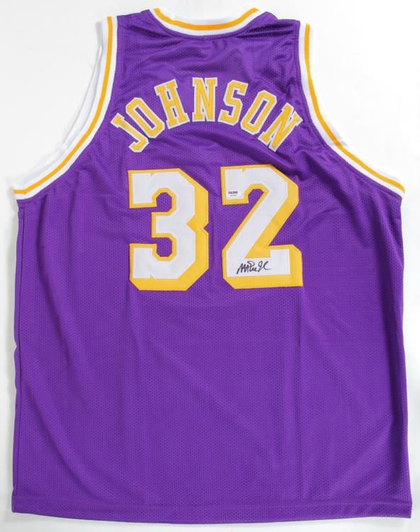 Magic Johnson Signed Lakers Basketball Jersey LOACustom on-court style jersey. Everything is sewn on, size XL. Hand-signed in black felt tip pen by Magic Johnson (Lakers HOF). The autograph includes an official PSA/DNA hologram and matching COA for authenticity purposes. The signing of the jersey was witnessed by PSA.