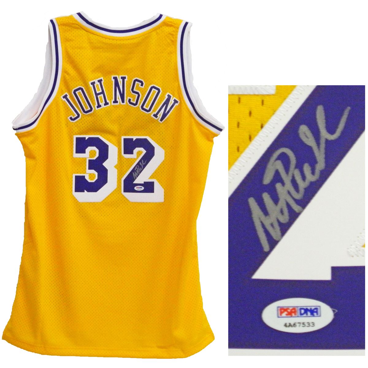 Magic Johnson signed Lakers gold Adidas swingman jersey. Item comes with a PSA/DNA tamper evident numbered sticker and matching Certificate of Authenticity which can be verified online.