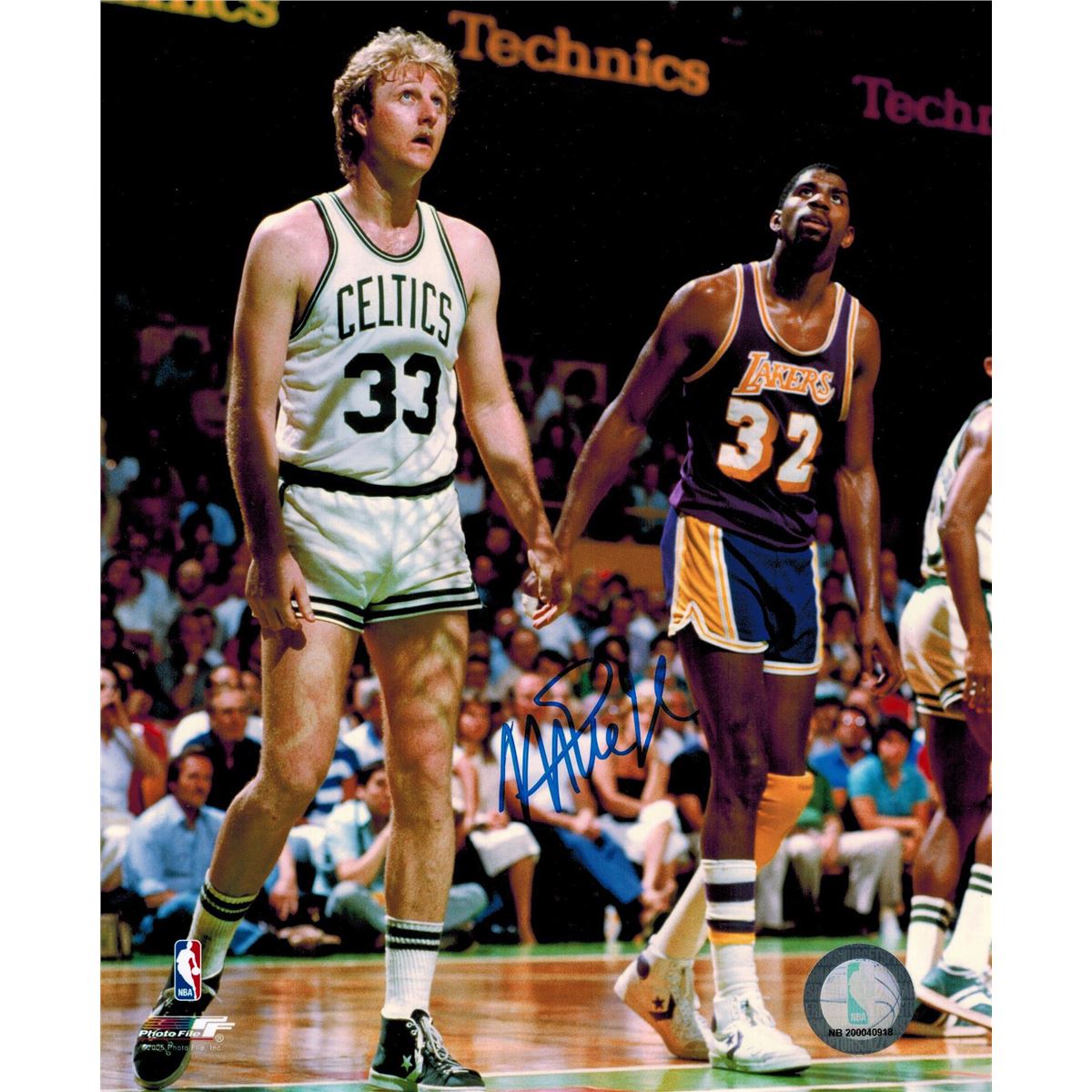Magic Johnson signed Los Angeles Lakers vs Boston Celtics NBA action 8x10 photo with Larry Bird. Item comes with a Schwartz Sports Memorabilia tamper-proof numbered hologram and Certificate of Authenticity which can be verified online.