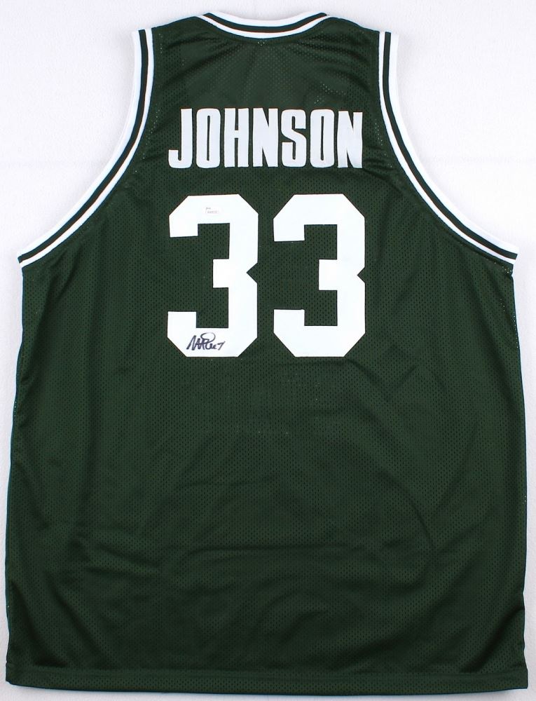 Custom on-court style jersey. Everything sewn on, size XL. Hand-signed in black felt-tip pen by Magic Johnson (Lakers HOF).