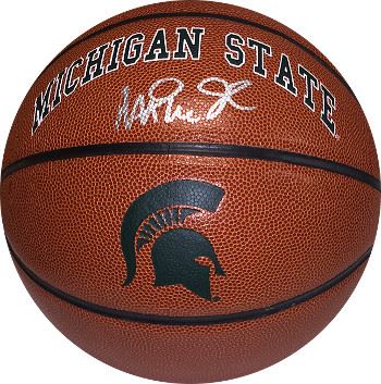 Magic Johnson averaged 17.0 points, 7.9 rebounds, and 7.4 assists per game as a freshman at Michgian State, and led the Spartans to a 25–5 record, the Big Ten Conference title, and a berth in the 1978 NCAA Tournament. The Spartans reached the Elite Eight, but lost narrowly to eventual national champion Kentucky. During the 1978–79 season, Michigan State again qualified for the NCAA Tournament, where they advanced to the championship game and faced Indiana State University, which was led by senior Larry Bird. In what was the most-watched college basketball game ever, Michigan State defeated Indiana State 75–64, and Johnson was voted Most Outstanding Player of the Final Four. Magic Johnson has hand signed this Michigan State Spartans Logo NCAA Brown Composite Basketball. Schwartz Sports Hologram and Certificate of Authenticity from Athlon Sports Collectibles.