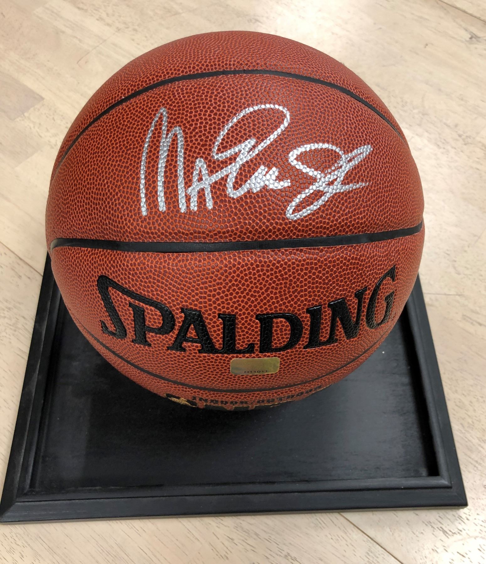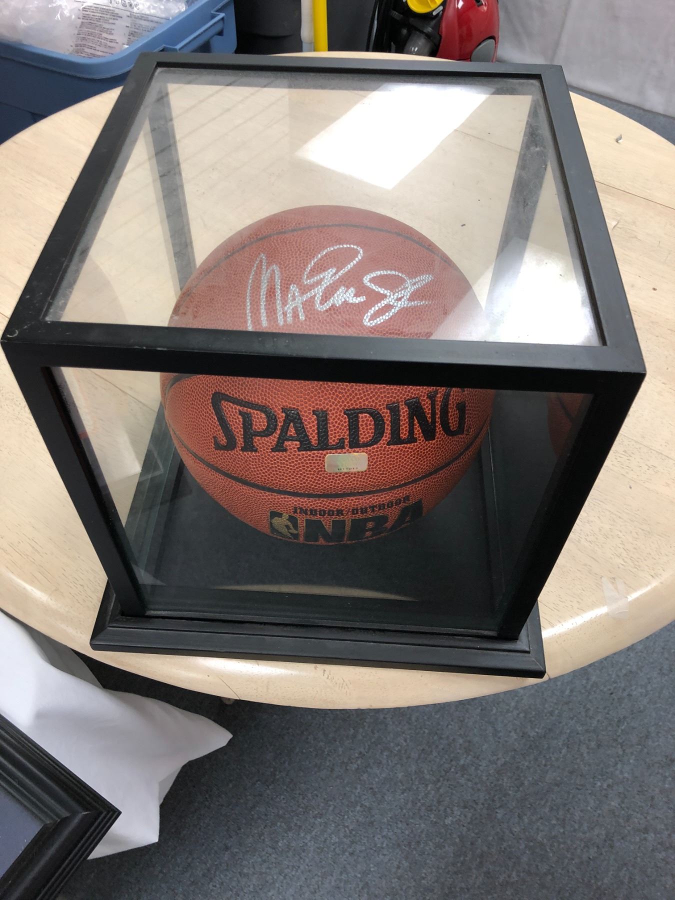 Magic Johnson autographed Basketball in Protective Case - Certified by Hardwood Authentics Sticker # H11011