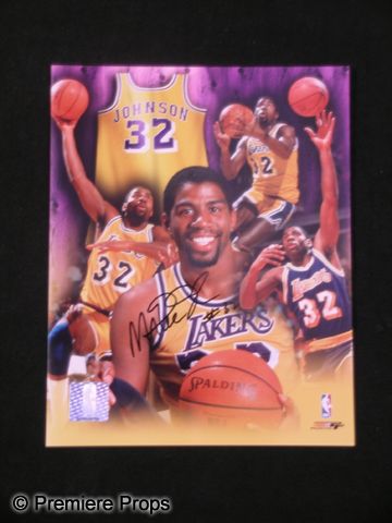If you're a fan of the Los Angeles Lakers, or just a fan of basketball, then this needs no introduction. This is a signed, glossy color photo of legendary basketball star Earvin 'Magic' Johnson. The photo features Magic in a collage of basketball shots, and is signed 'Magic Johnson #32' in black ink. The autograph was obtained by a gentleman who has been collecting autographs for over 20 years. (measures approx. 8" x 10")