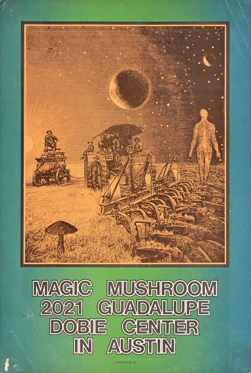 Dobie Center in Austin Texas, poster art by J. Harter 1972. Measures 10.5 x 14.75