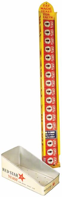Magic and Red Star Yeast Tin Store Displays. NOS condition. Magic display measures 27 3/4 inches tall.