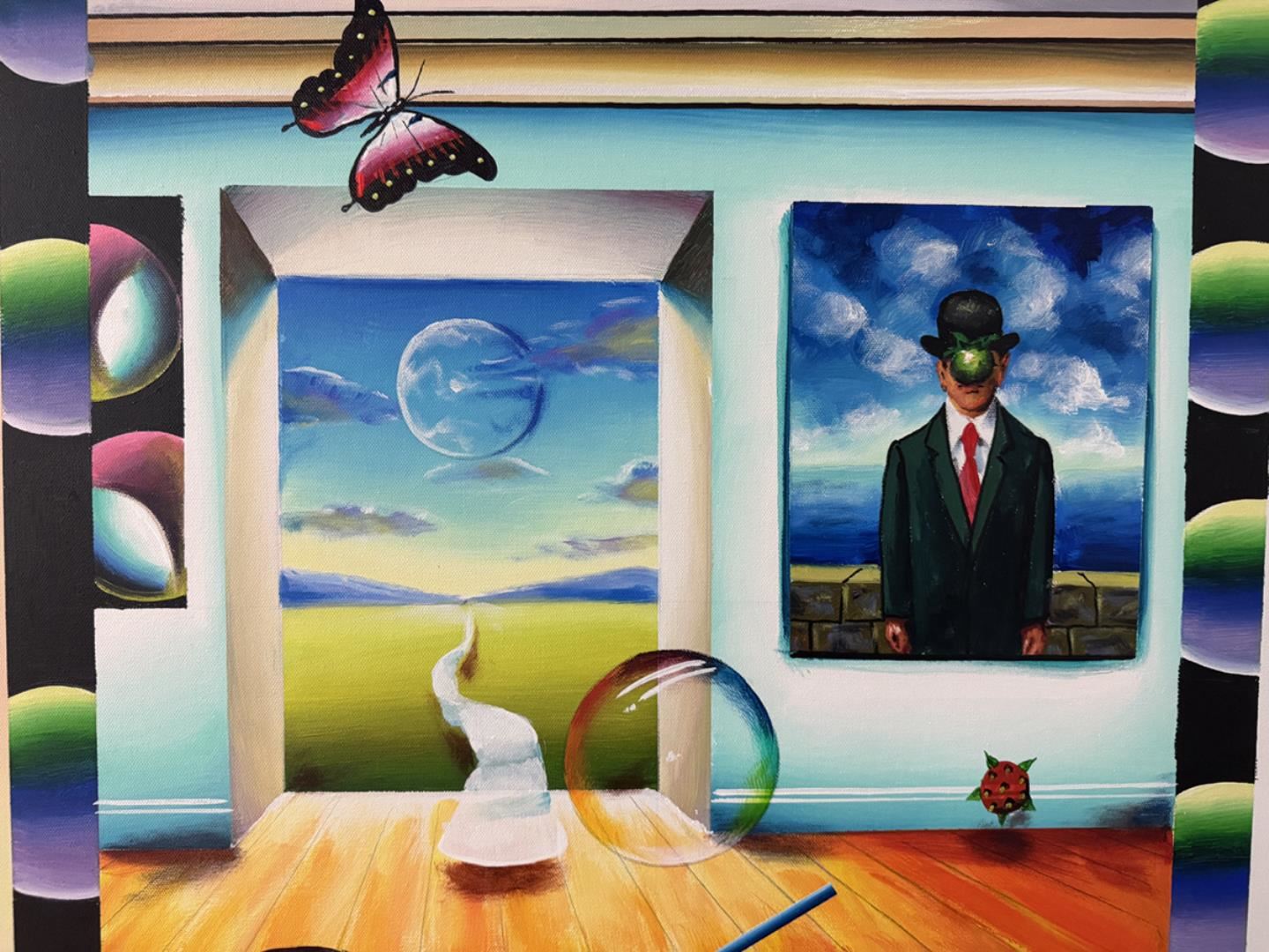 Bright & fun original acrylic on canvas, hand signed by Artist. This artwork comes framed and ready to hang. Art size 40x30" framed size 42x32"