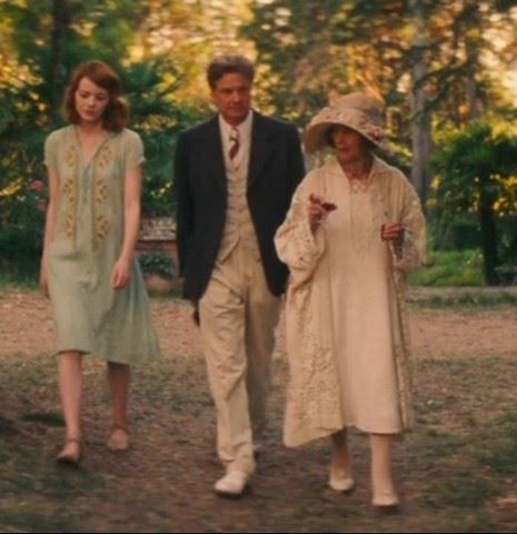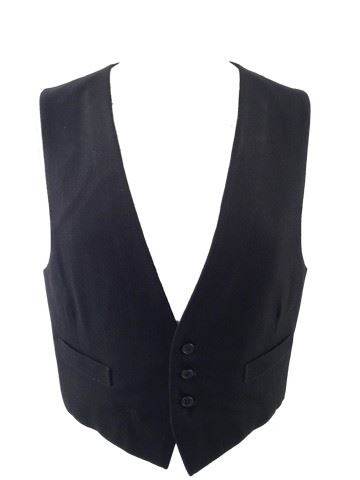 Magic in the Moonlight (2014) is a romantic comedy about an Englishman brought in to help unmask a possible swindle. Personal and professional complications ensue. Written and directed by Woody Allen. This is Howard Burkan's (Simon McBurney) screen worn "Chris Kerr" black tuxedo jacket, black vest with a 3 button front and silk back, pair of "Cosprop" cream pants with rough texture and two white half -vests.