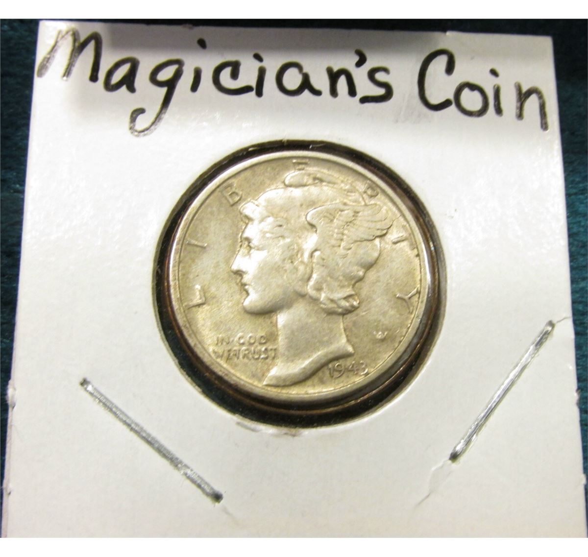 Magician's Coin, Mercury Dime on one side and reverse of a Wheat Cent on the other; & original Unuse