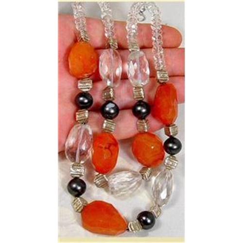 Magificent Massive Gemstone Choker 135 GRAMS....Yes, that is 135 luxurious grams of genuine natural carnelian, 11mm black pearls and tribal silver. Vera has presented this masterpiece in a double string measuring approximately 14" in length. The faceted crystal are impressive and simply radiate light from every angle. The center carnelian has measurements of 25x21x16mm for perspective to size. For those not familar with metric 25mm=1". Truly a spectacular piece of jewelry for those looking for a massive impressive design! Another exotic treasure from Vera at Artisan Tribal Gems!