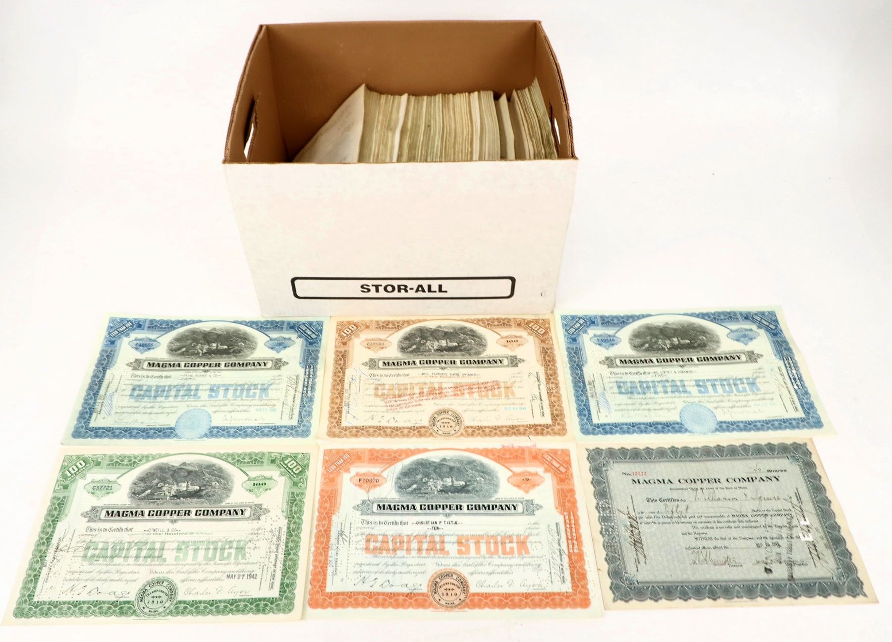 Magma Copper Company;1500 or more certs, mine vignette, c.1925-40.