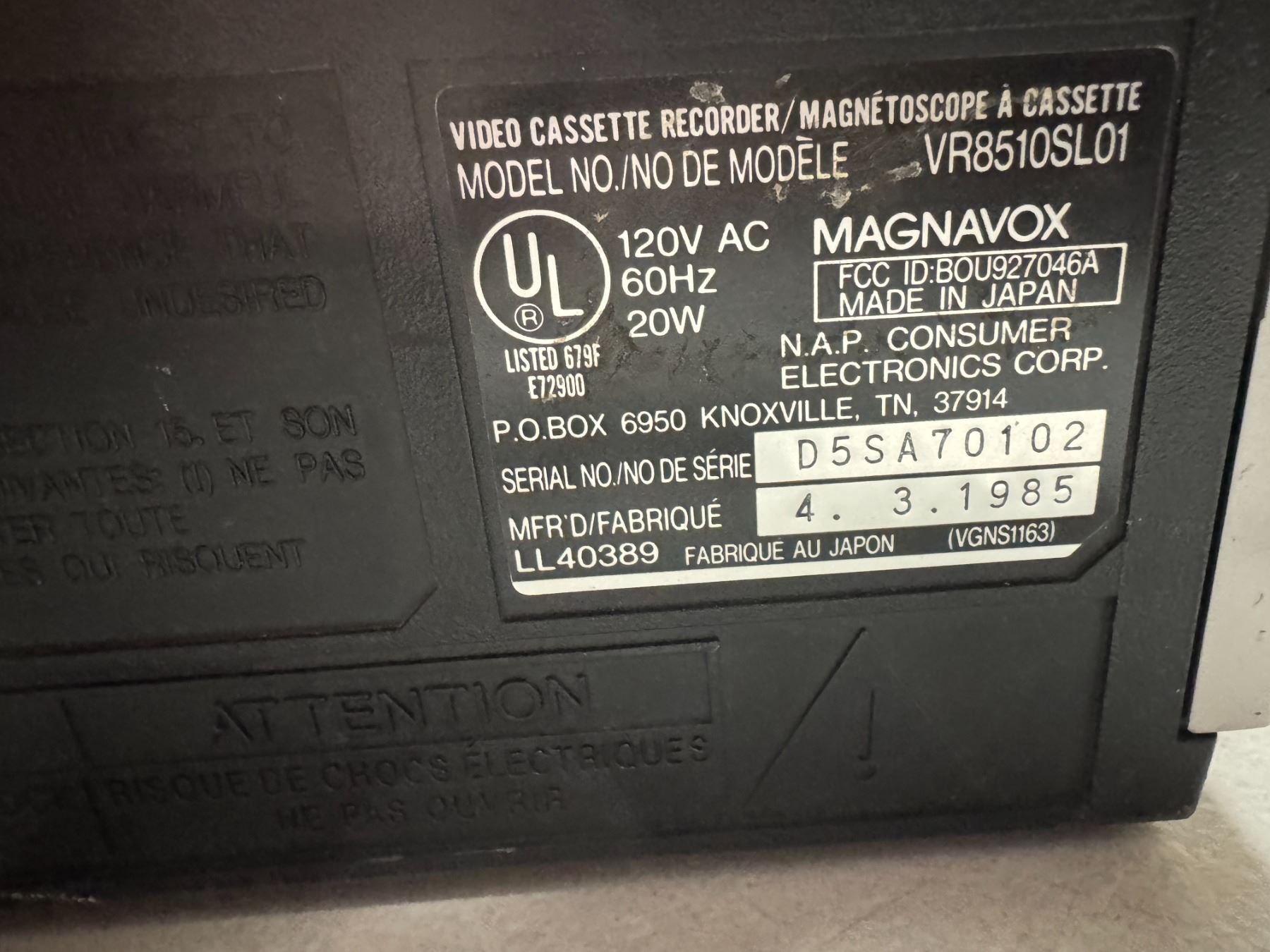 Magnavox VHS machine