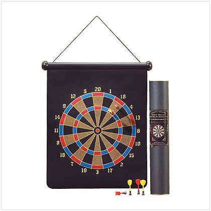 Magnetic Dart Board **|**|** Magnetic Dart Board A wide variety of fun games of skill can be played using this safe, magnetic dart board set. Includes 6 magnetic darts. Board constructed of rubber, steel and velvet. 17 x 1 1/2" x 27 1/4" high. 1 EA (WFM-36607) games, sports, darts, dart boards