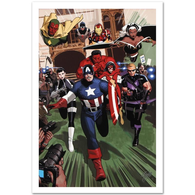 A piece of comic book history, this limited edition, from original art by Daniel Acuna, depicts the heroic Captain America. Spanish artist Daniel Acuna cites artists like Jack Kirby and Simon Bisley as his early artist influences. After doing some occasional cover art for Marvel, Acuna signed an exclusive contract with Marvel in 2007. "Magneto: Not a Hero #2" is a numbered limited edition giclee on canvas by Daniel Acuna presented by Marvel Comics, hand signed by the great Stan Lee! Includes Certificate of Authenticity! Measures approx. 18" x 27" (image).