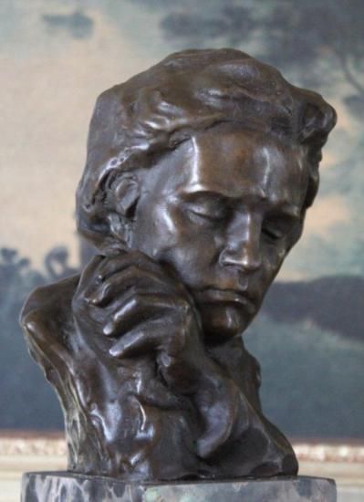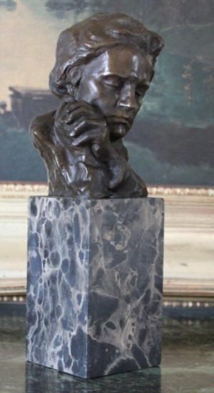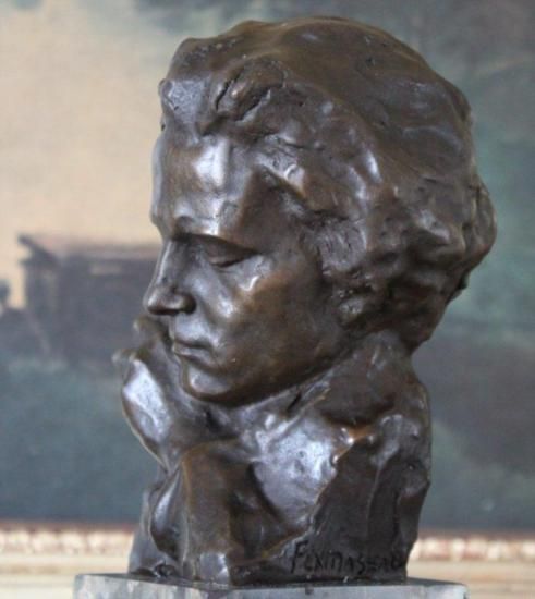 Magnificent Beethoven Bust, Bronze Sculpture, After Fix Masseau, 10 1/4inH x 5inW x 2 3/4in D 9lbs. This bronze sculpture was produced using the Lost Wax casting method. The Lost Wax Cast method is the most precise metal casting technique in existence, ensuring exquisite detail of the original host model which is usually sculpted in clay or wax. This Lost Wax casting method is an extremely labor intensive and expensive process, but the end results produce a Heirloom Quality Masterpiece!
