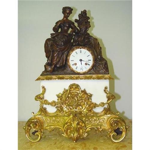 We are very excited to offer you this amazing bronze gilt mantel clock that dates from the third quarter of the 19th C. (c. 1870). This is the most wonderful mantel clock you will ever find!The gilding is in perfect condition and the dial plate has Roman numerals.!The clock is in perfect condition and in working order.On the top of the clock is a very fine figure represent a woman with flowers and looking to two pigeons.Don't miss the opportunity to own this treasure!The dimensions are: Heght 20", Depth 4,5" and Width 15 Inches.Shipping costs to the US are US$ 150. After payment you will receive the clock in about 4 days. Regarding shipping we will pack this marvellous clock in a wooden crate so you receive it in perfect condition.If you have an eye for an unique piece that will give your home that one of a kind look,this is it !! Thank you for looking this one of a kind mantel clock.