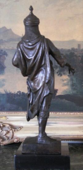 Arabian Knight Bronze Sculpture, After Cebiom, 18"H x 6 1/2"D x 6 1/2"W 20 lbs. This bronze sculpture was produced using the "Lost Wax" casting method. The"Lost Wax" Cast method is the most precise metal casting technique in existence, ensuring exquisite detail of the original host model which is usually sculpted in clay or wax. This "Lost Wax" casting method is an extremely labor intensive and expensive process, but the end results produce a Heirloom Quality Masterpiece!