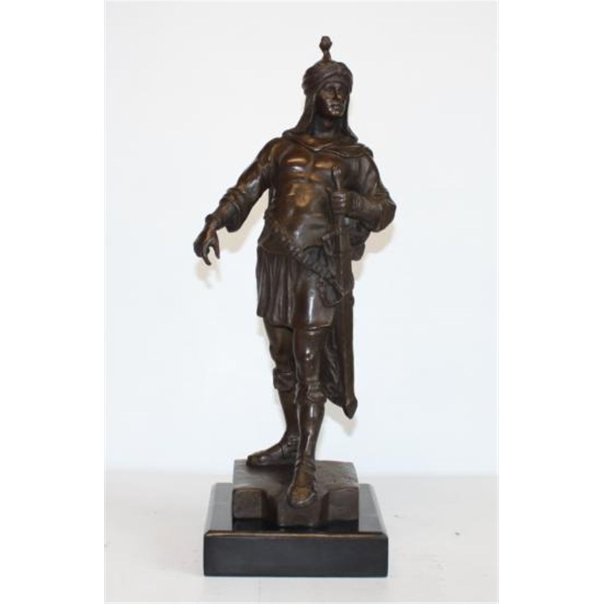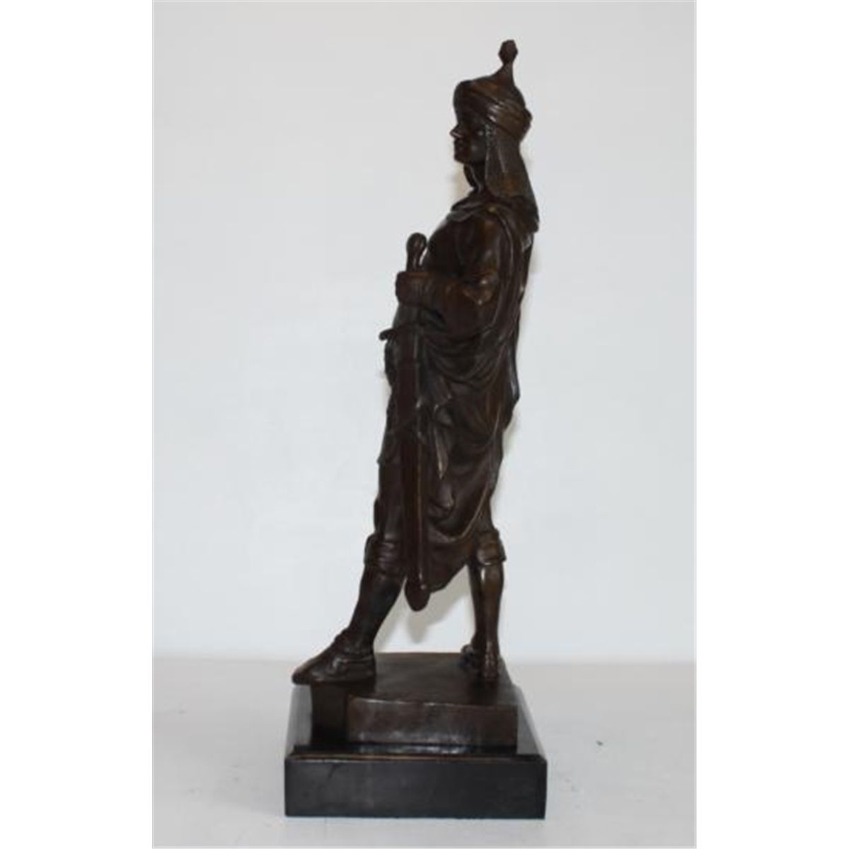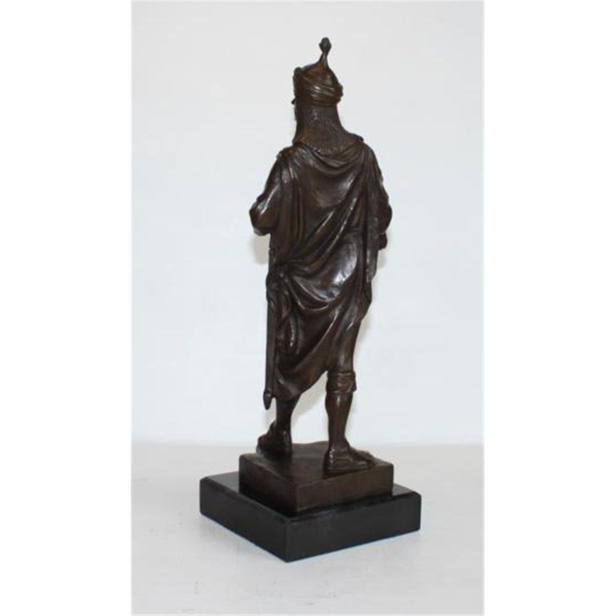 Arabian Knight Bronze Sculpture, After Ceviom, 18"H x 6 1/2"D x 6 1/2"W 20 lbs. This bronze sculpture was produced using the "Lost Wax" casting method. The"Lost Wax" Cast method is the most precise metal casting technique in existence, ensuring exquisite detail of the original host model which is usually sculpted in clay or wax. This "Lost Wax" casting method is an extremely labor intensive and expensive process, but the end results produce a Heirloom Quality Masterpiece!