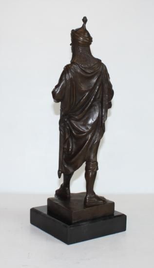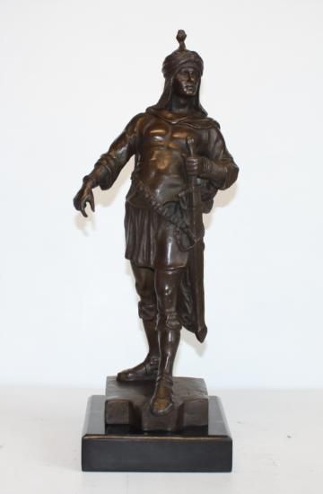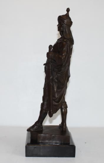 Arabian Knight Bronze Sculpture, After Ceviom, 18"H x 6 1/2"D x 6 1/2"W 20 lbs. This bronze sculpture was produced using the "Lost Wax" casting method. The"Lost Wax" Cast method is the most precise metal casting technique in existence, ensuring exquisite detail of the original host model which is usually sculpted in clay or wax. This "Lost Wax" casting method is an extremely labor intensive and expensive process, but the end results produce a Heirloom Quality Masterpiece!