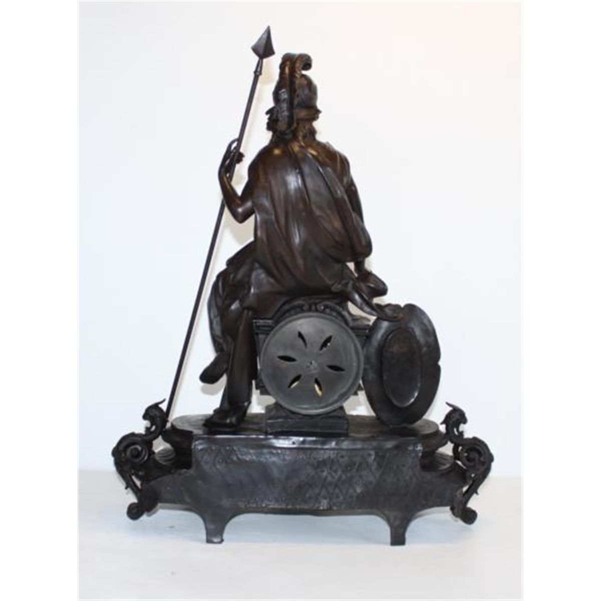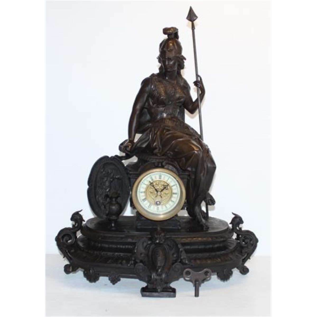 Britannia Goddess Bronze Mantel Clock, After F. Preiss, 20"H x 17"W x 8"D 30 lbs. This bronze sculpture was produced using the "Lost Wax" casting method. The"Lost Wax" Cast method is the most precise metal casting technique in existence, ensuring exquisite detail of the original host model which is usually sculpted in clay or wax. This "Lost Wax" casting method is an extremely labor intensive and expensive process, but the end results produce a Heirloom Quality Masterpiece!