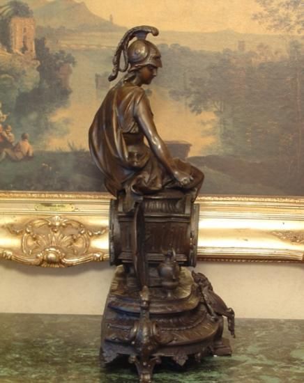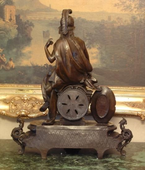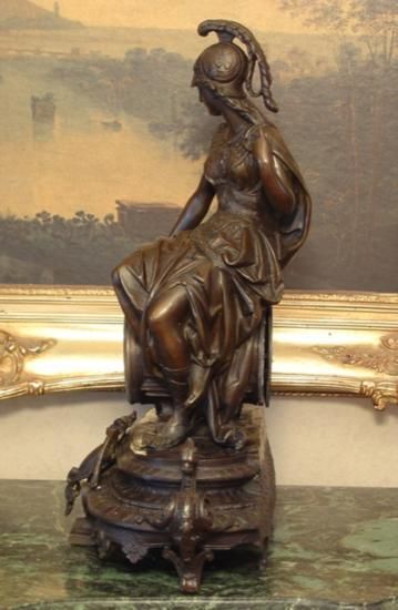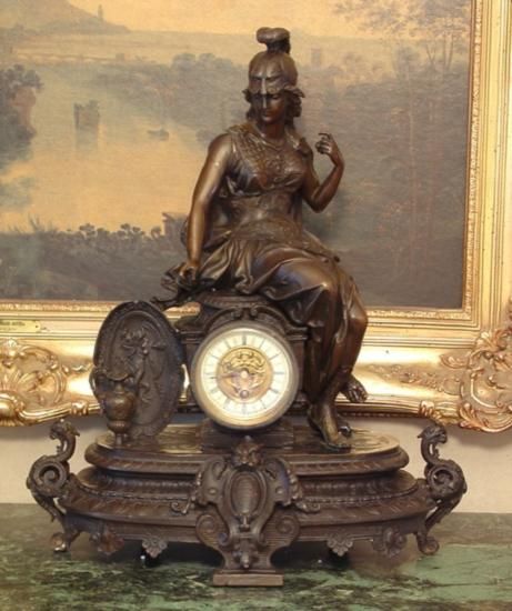 Britannia Goddess Bronze Mantel Clock, After F. Preiss, 20"H x 17"W x 8"D 30 lbs. This bronze sculpture was produced using the "Lost Wax" casting method. The"Lost Wax" Cast method is the most precise metal casting technique in existence, ensuring exquisite detail of the original host model which is usually sculpted in clay or wax. This "Lost Wax" casting method is an extremely labor intensive and expensive process, but the end results produce a Heirloom Quality Masterpiece!