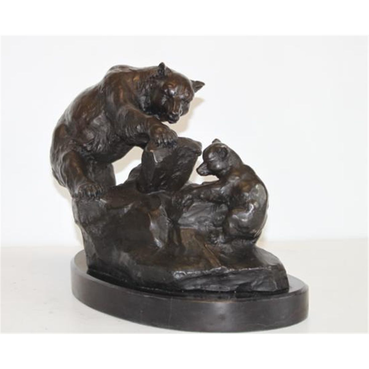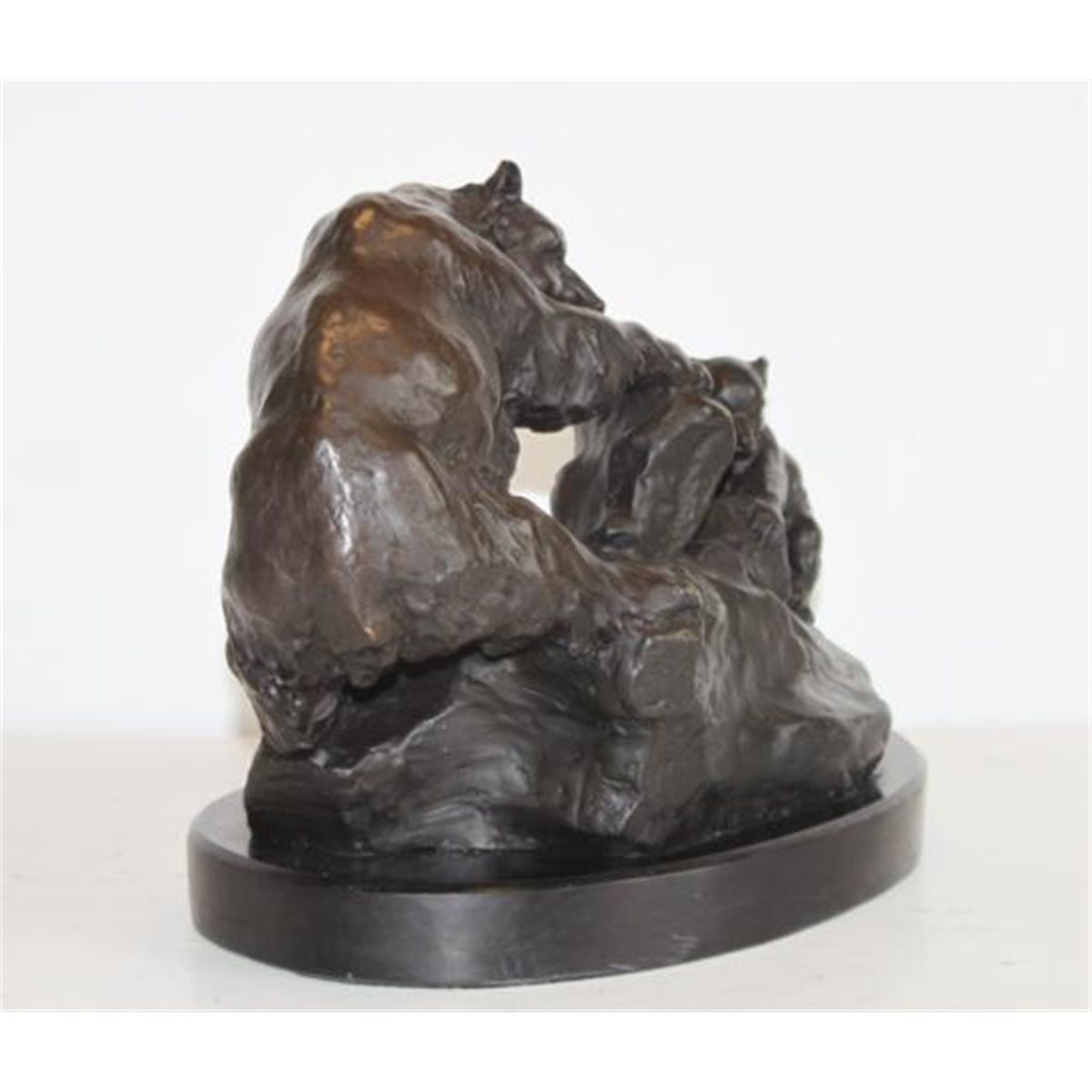 Grizzly Bear Mother and Cub, Bronze Sculpture, After CM Russell, Signed 10"H x12"W x 7"D 24 lbs This bronze sculpture was produced using the "Lost Wax" casting method. The"Lost Wax" Cast method is the most precise metal casting technique in existence, ensuring exquisite detail of the original host model which is usually sculpted in clay or wax. This "Lost Wax" casting method is an extremely labor intensive and expensive process, but the end results produce a Heirloom Quality Masterpiece! Charles Marion Russell (March 19, 1864, St. Louis, Missouri-October 24, 1926, Great Falls, Montana), also known as C. M. Russell, was an artist of the American West. Russell created more than 2,000 paintings of cowboys, Indians, and landscapes set in the Western United States, in addition to bronze sculptures. Known as the cowboy artist, Russell was also a storyteller and author. The C. M. Russell Museum Complex is located in his hometown of Great Falls, Montana houses more than 2,000 Russell artworks, personal objects, and artifacts.