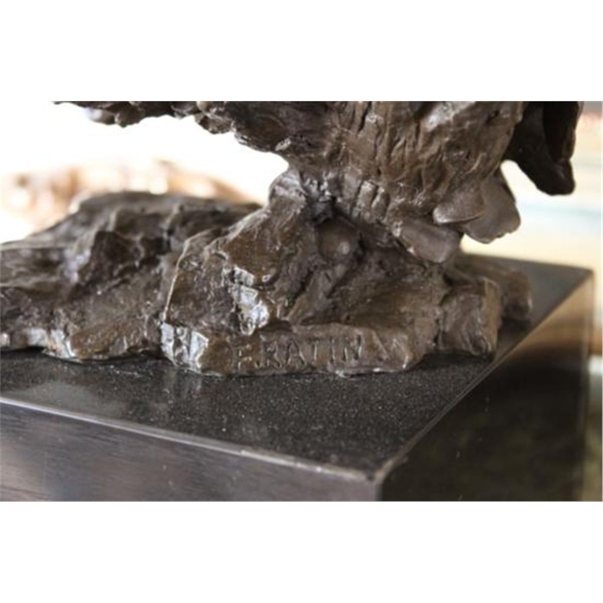 Landing Eagle Bronze Sculpture, After F. Ratin - 20"H x 15"W x 8.5"D 32 lbs. This bronze sculpture was produced using the "Lost Wax" casting method. The"Lost Wax" Cast method is the most precise metal casting technique in existence, ensuring exquisite detail of the original host model which is usually sculpted in clay or wax. This "Lost Wax" casting method is an extremely labor intensive and expensive process, but the end results produce a Heirloom Quality Masterpiece!