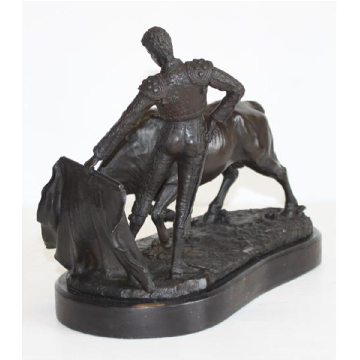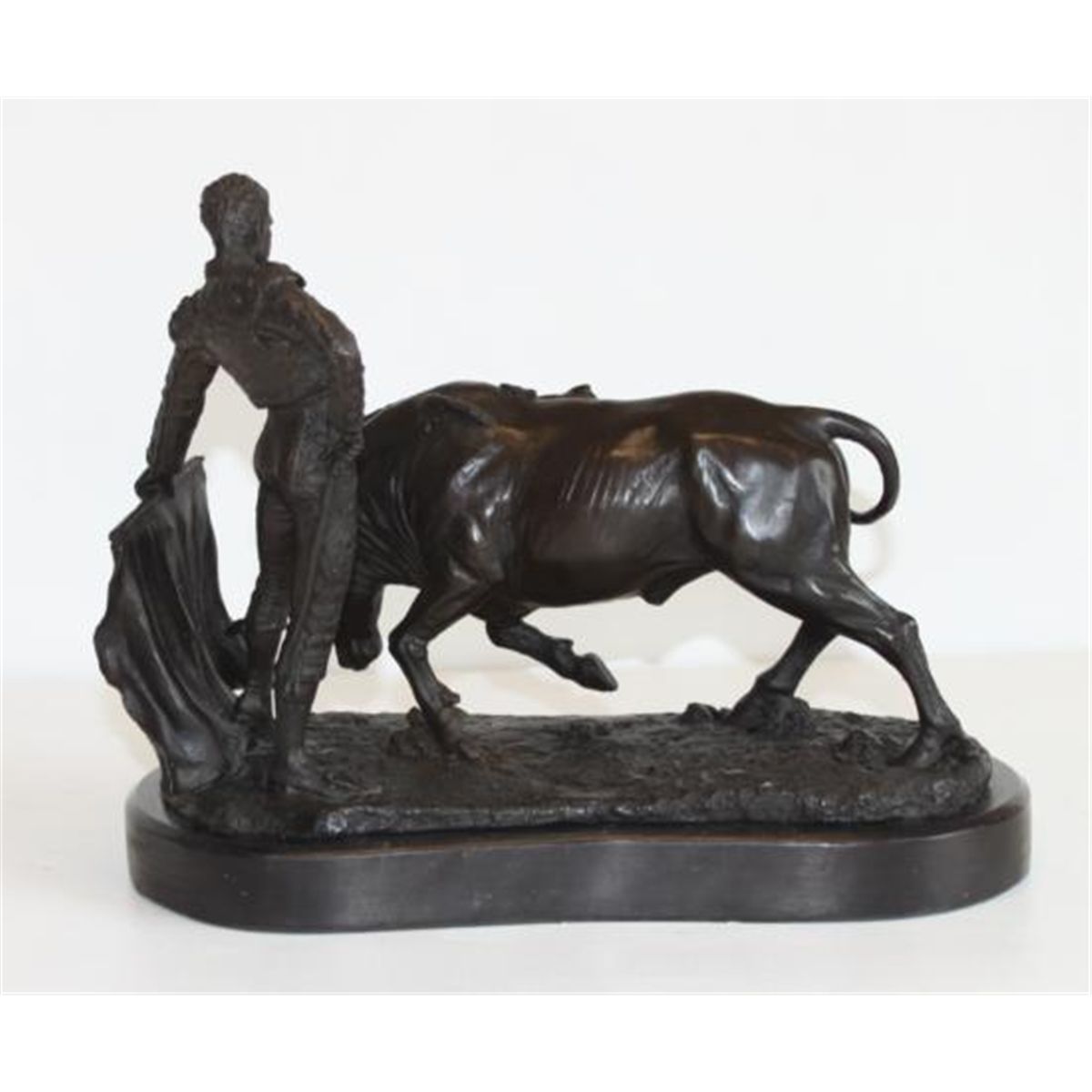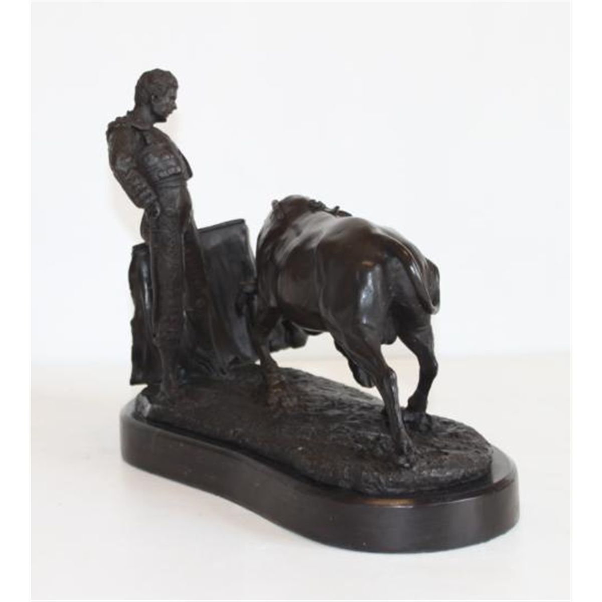 Matador Bronze Sculpture, 10"H x 12"W x 7"D 19 lbs. This bronze sculpture was produced using the "Lost Wax" casting method. The"Lost Wax" Cast method is the most precise metal casting technique in existence, ensuring exquisite detail of the original host model which is usually sculpted in clay or wax. This "Lost Wax" casting method is an extremely labor intensive and expensive process, but the end results produce a Heirloom Quality Masterpiece!