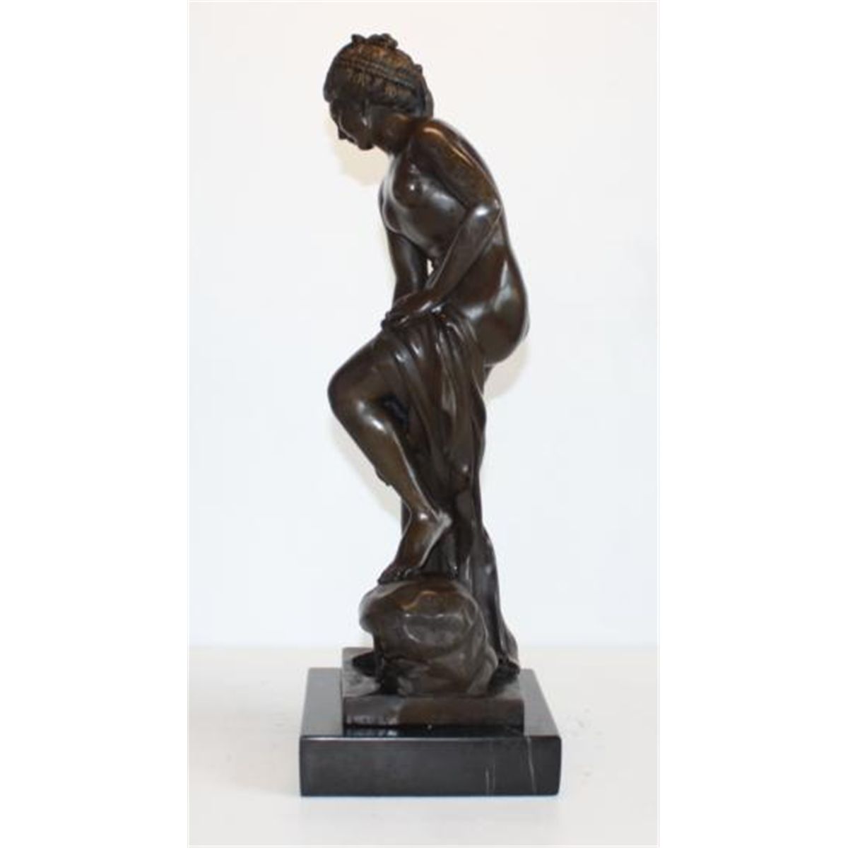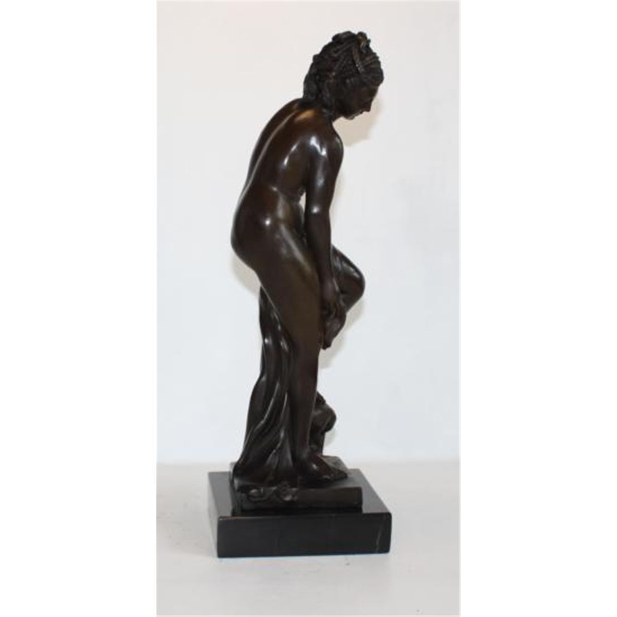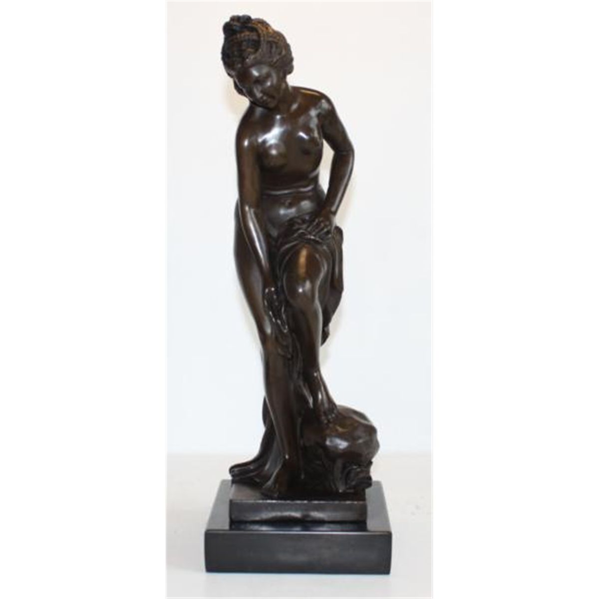 Sensual Woman Bronze Sculpture, After Barye, 20"D x 7"W x 7"D 28 lbs. This bronze sculpture was produced using the "Lost Wax" casting method. The"Lost Wax" Cast method is the most precise metal casting technique in existence, ensuring exquisite detail of the original host model which is usually sculpted in clay or wax. This "Lost Wax" casting method is an extremely labor intensive and expensive process, but the end results produce a Heirloom Quality Masterpiece!