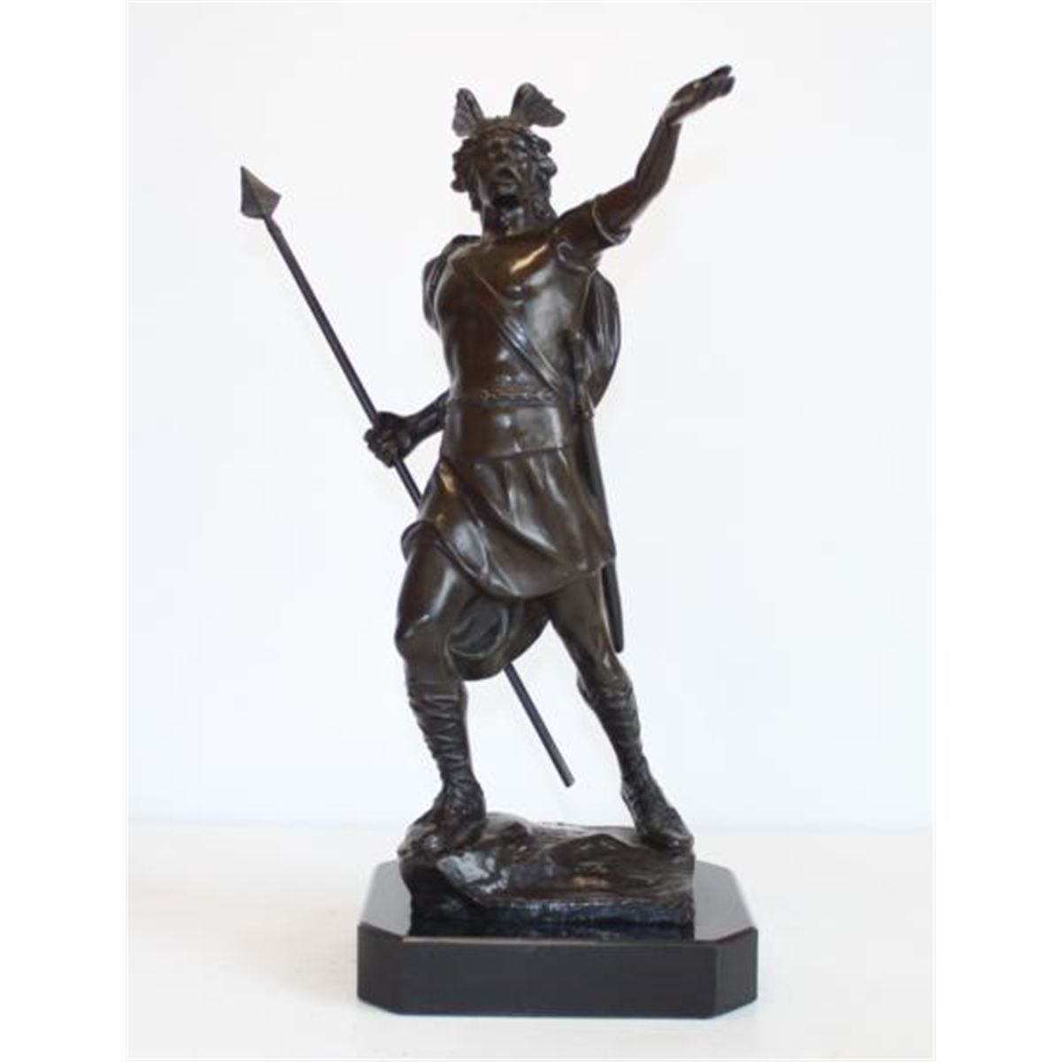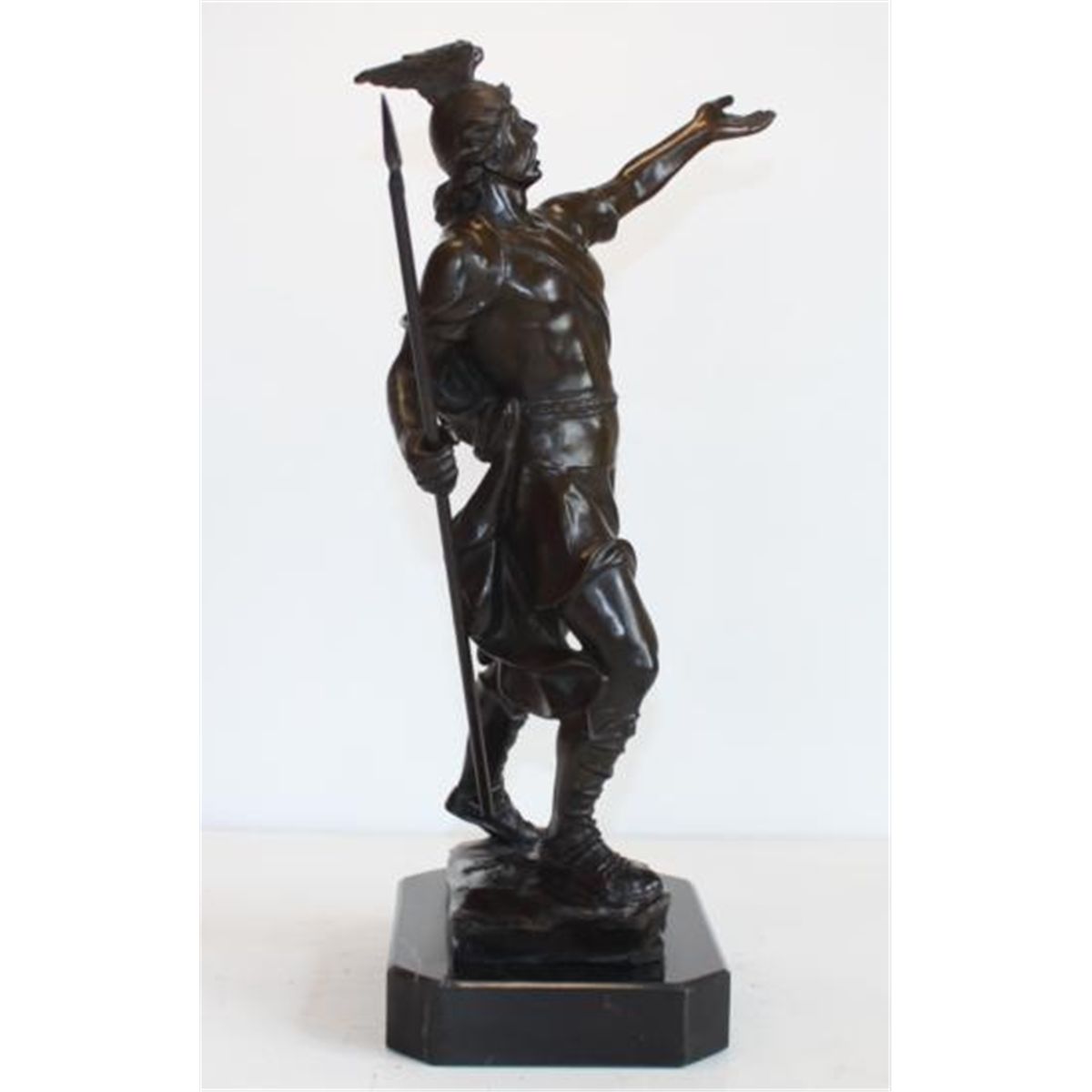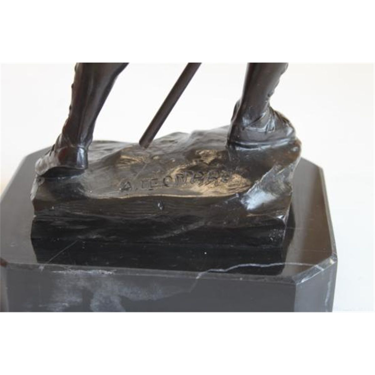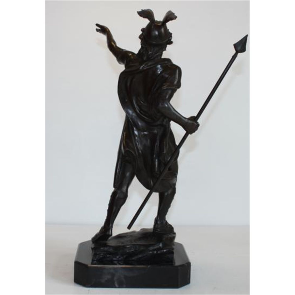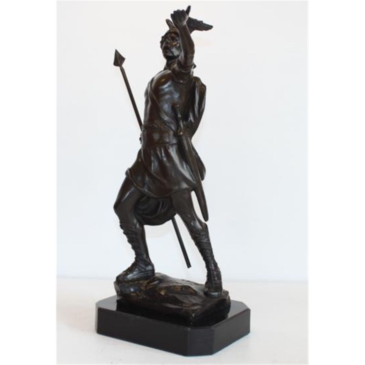 Viking Warrior Bronze Sculpture, After Leonard 19"H x 10"W x 7"D 20 lbs. This bronze sculpture was produced using the "Lost Wax" casting method. The"Lost Wax" Cast method is the most precise metal casting technique in existence, ensuring exquisite detail of the original host model which is usually sculpted in clay or wax. This "Lost Wax" casting method is an extremely labor intensive and expensive process, but the end results produce a Heirloom Quality Masterpiece!