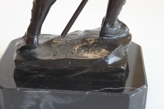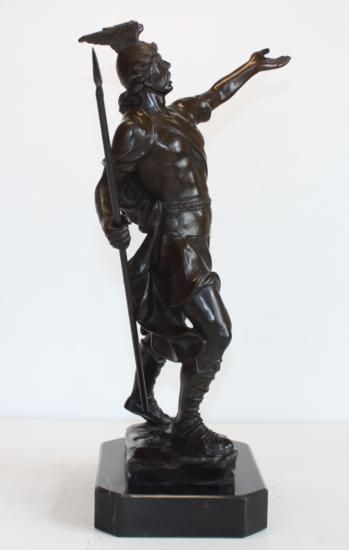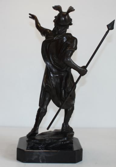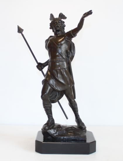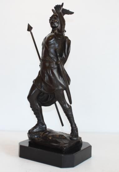 Viking Warrior Bronze Sculpture, After Leonard 19"H x 10"W x 7"D 20 lbs. This bronze sculpture was produced using the "Lost Wax" casting method. The"Lost Wax" Cast method is the most precise metal casting technique in existence, ensuring exquisite detail of the original host model which is usually sculpted in clay or wax. This "Lost Wax" casting method is an extremely labor intensive and expensive process, but the end results produce a Heirloom Quality Masterpiece!