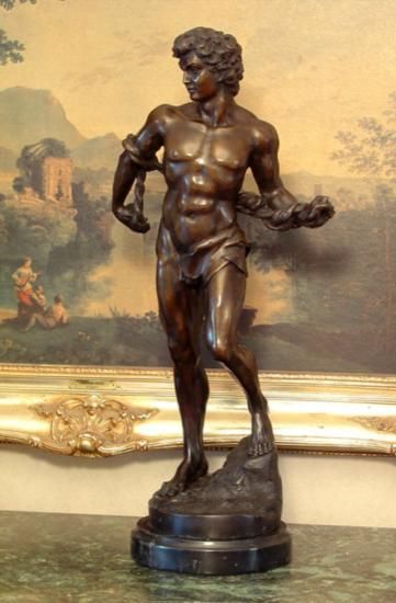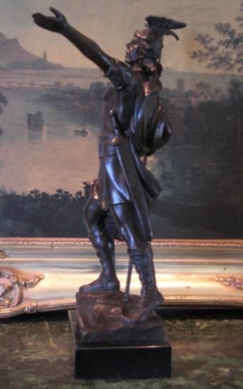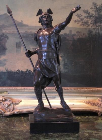 Viking Warrior Bronze Sculpture, After Leonard 19"H x 10"W x 7"D 20 lbs. This bronze sculpture was produced using the "Lost Wax" casting method. The"Lost Wax" Cast method is the most precise metal casting technique in existence, ensuring exquisite detail of the original host model which is usually sculpted in clay or wax. This "Lost Wax" casting method is an extremely labor intensive and expensive process, but the end results produce a Heirloom Quality Masterpiece!