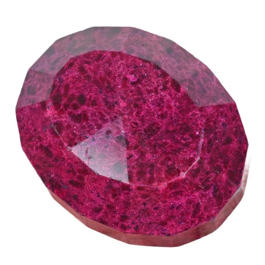 Magnificent Huge 1680 Ct Certified Natural Red Ruby Solitaire. Fine oval cut measuring 77 x 62 x 45 mm. Has a vivid even red hue with a fine finish and polish. Species: Corundum. Natural opaque.