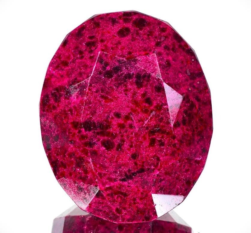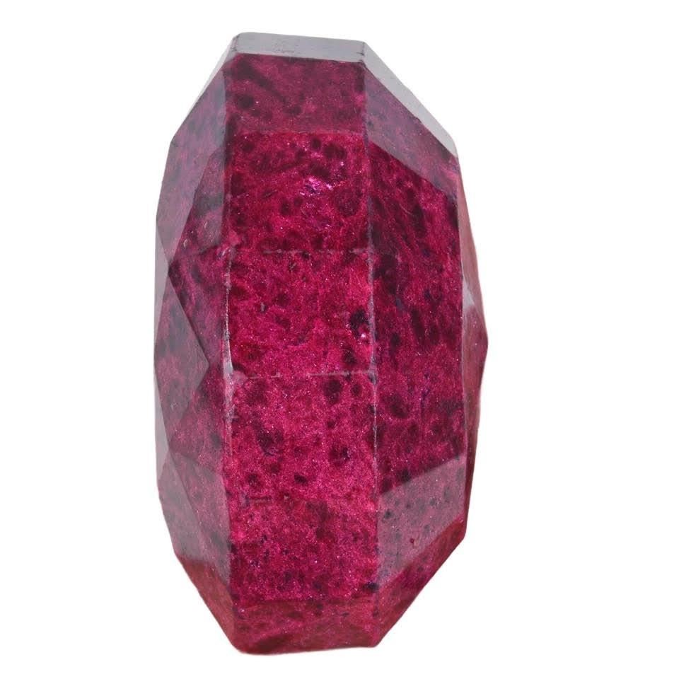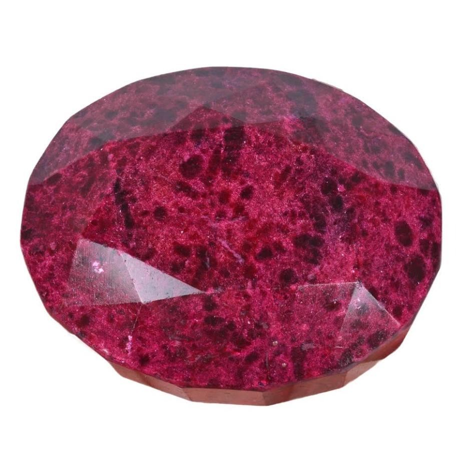 Magnificent Huge 1680 Ct Certified Natural Red Ruby Solitaire. Fine oval cut measuring 77 x 62 x 45 mm. Has a vivid even red hue with a fine finish and polish. Species: Corundum. Natural opaque.