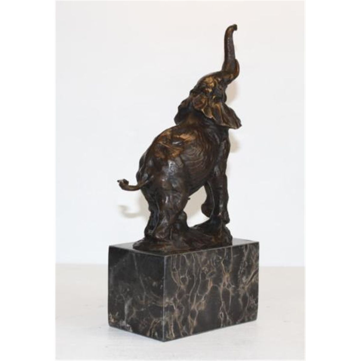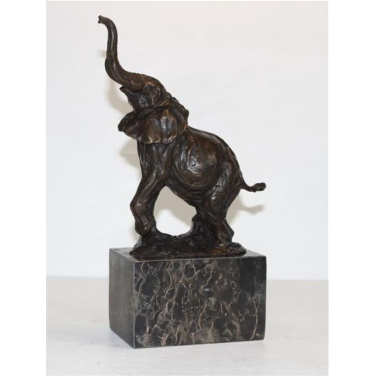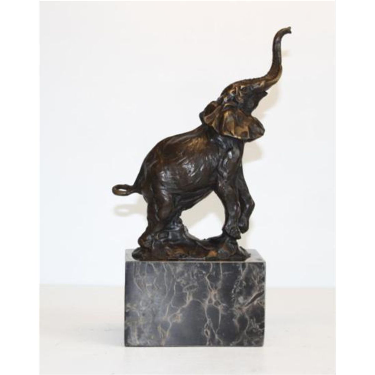 Magnificent Elephant, Bronze Sculpture, After Milo 11 3/4"H x 6 1/2"W x 3"D 10 lbs . This bronze sculpture was produced using the Lost Wax casting method. The Lost Wax Cast method is the most precise metal casting technique in existence, ensuring exquisite detail of the original host model which is usually sculpted in clay or wax. This Lost Wax casting method is an extremely labor intensive and expensive process, but the end results produce a Heirloom Quality Masterpiece!