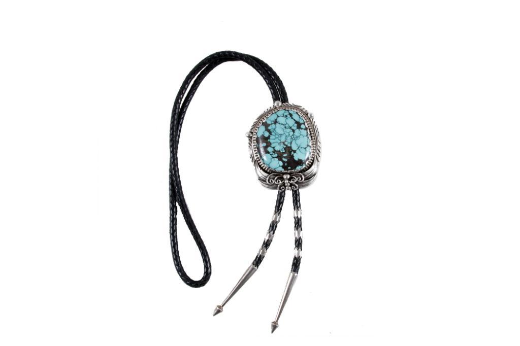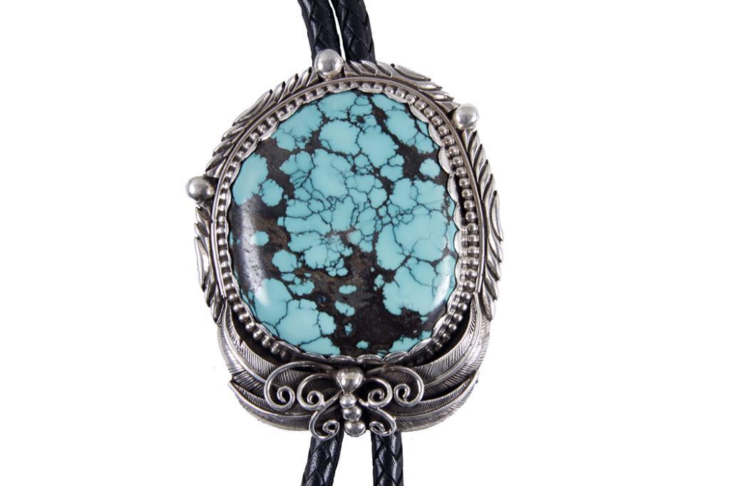 Magnificent Men's Bolo Tie With large spiderweb turquoise cab, approx 200+ carats set in sterling si
