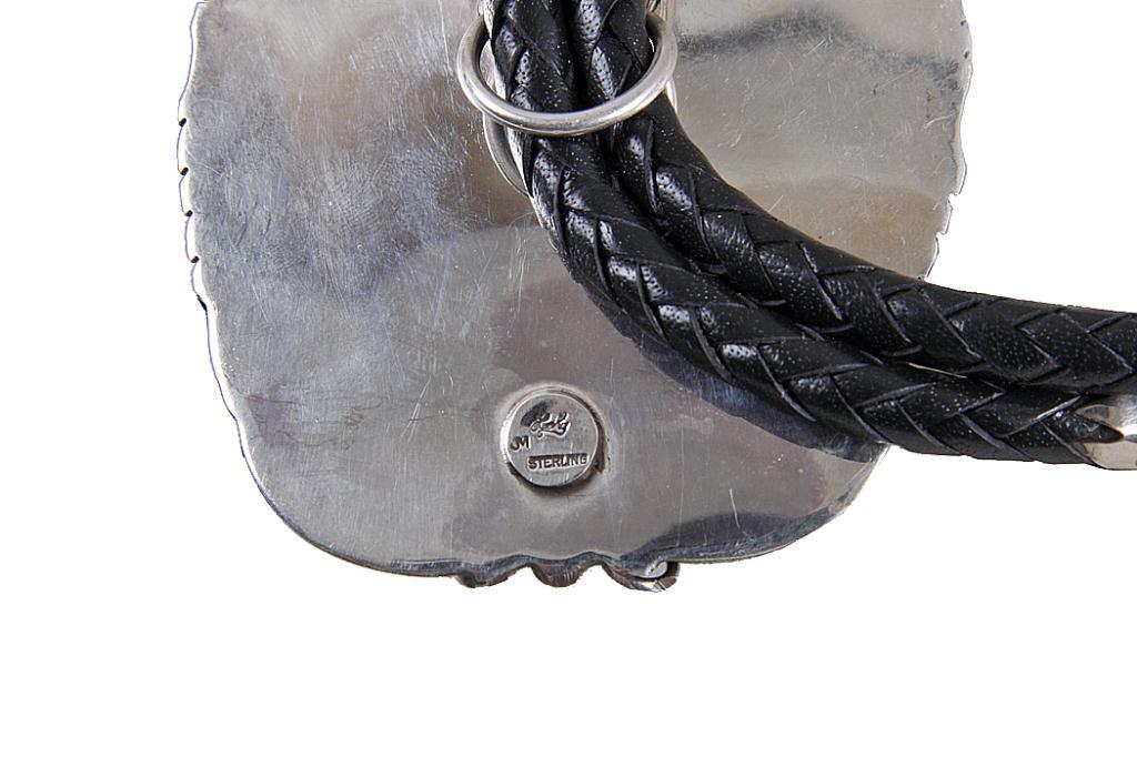 Magnificent Men's Bolo Tie With large spiderweb turquoise cab, approx 200+ carats set in sterling silver, sterling silver tips, stamped by silversmith "JM" for Jewelry Menders, Apache Junction, AZ., signed "Lucky" who is John Robinson.With large spiderweb turquoise cab, approx 200+ carats set in sterling silver, sterling silver tips, stamped by silversmith "JM" for Jewelry Menders, Apache Junction, AZ., signed "Lucky" who is John Robinson.