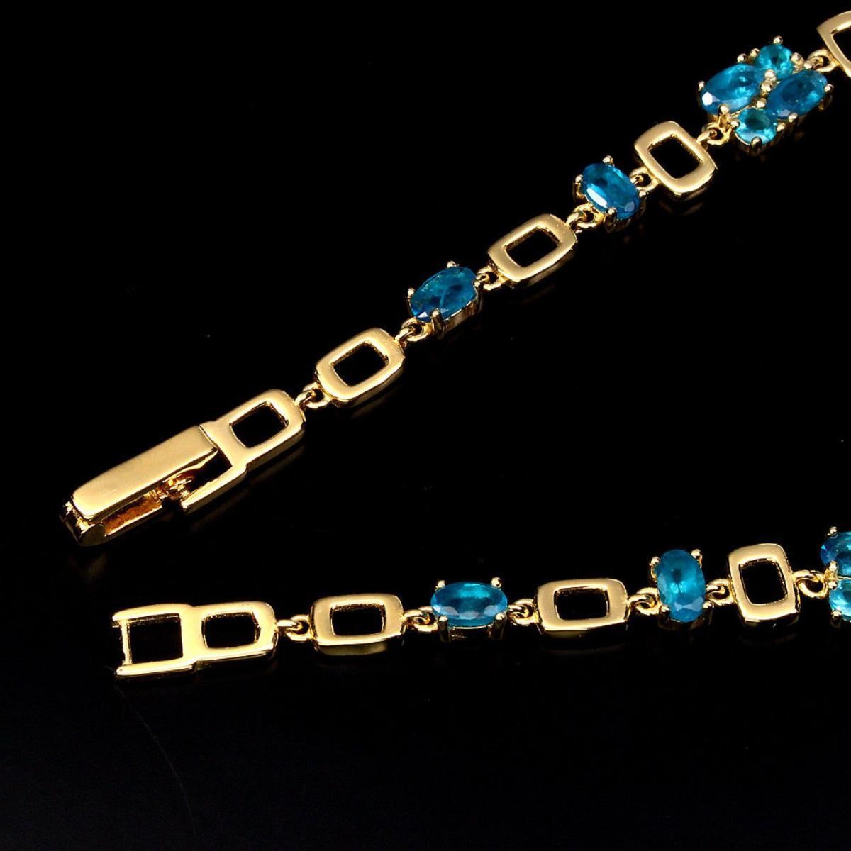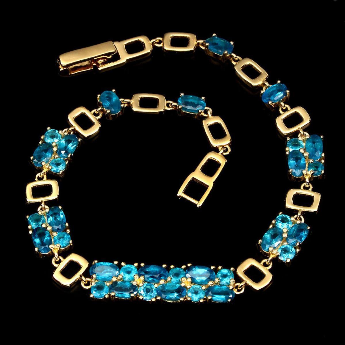 925 STERLING SILVER;PLATE...14K YELLOW GOLD;;LENGTH (INCHES)7.5MAIN STONEAPATITEOTHER GEMSTOTAL WEIGHT45.88 CT (TOTAL WEIGHT OF SILVER + STONE)DIMENSION* STONE 3.0 TO 5.0 X 3.0 MM. * FACE BRACELET 150.0 X 7.0 MM.MAIN STONE SHAPEOVAL CUTMAIN STONE COLORAAA NEON BLUECLARITY/GRADEIF TO VVSLUSTERMAGNIFICENT;ORIGINBrazil;HARDNESS5