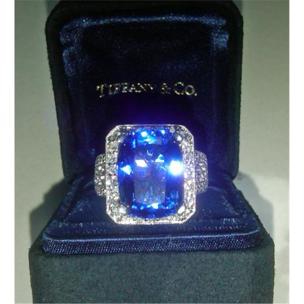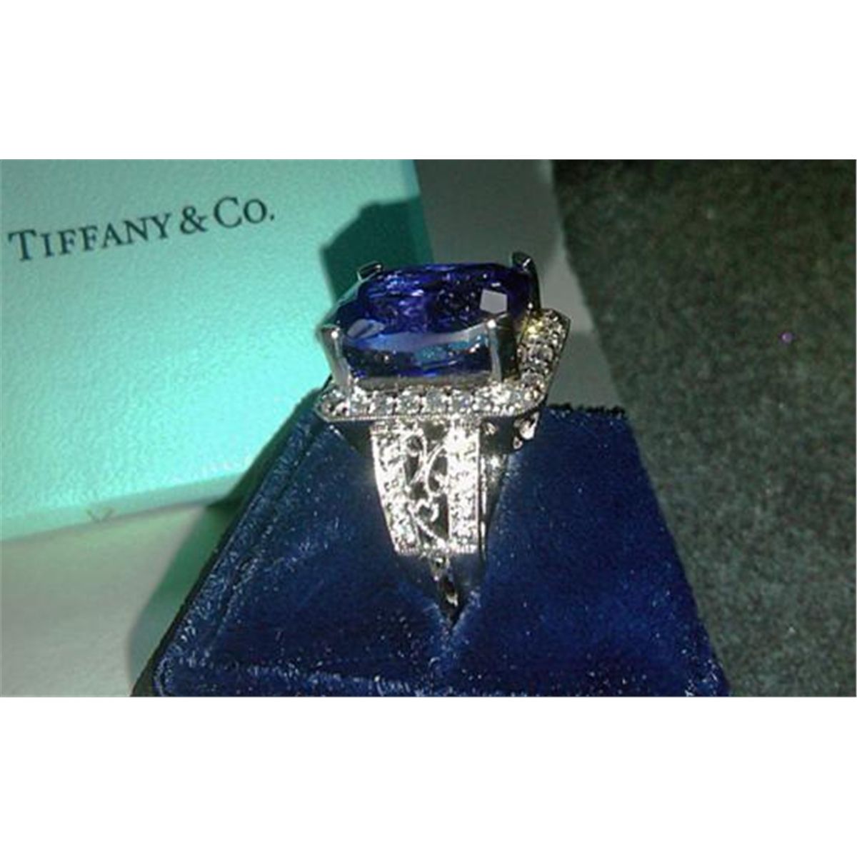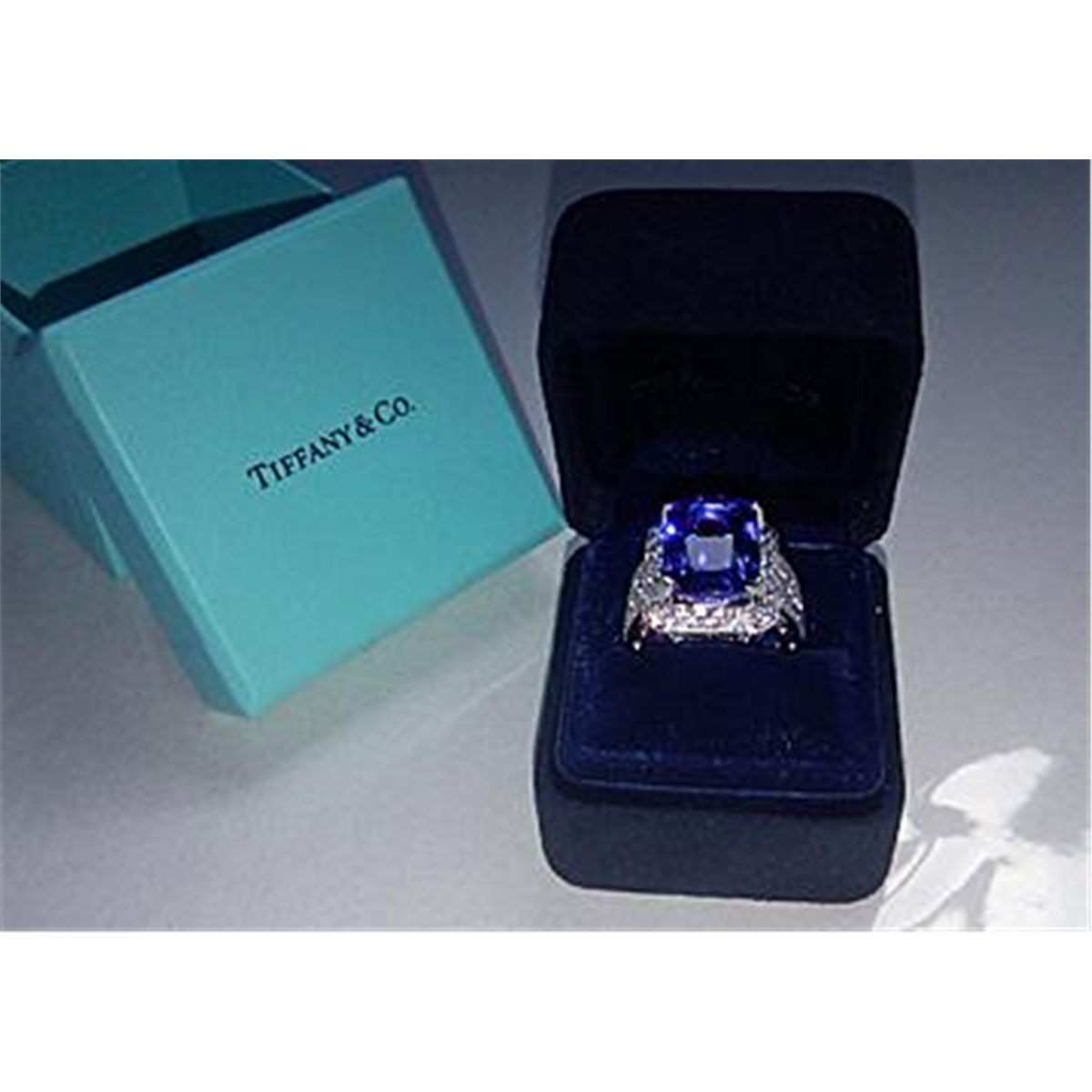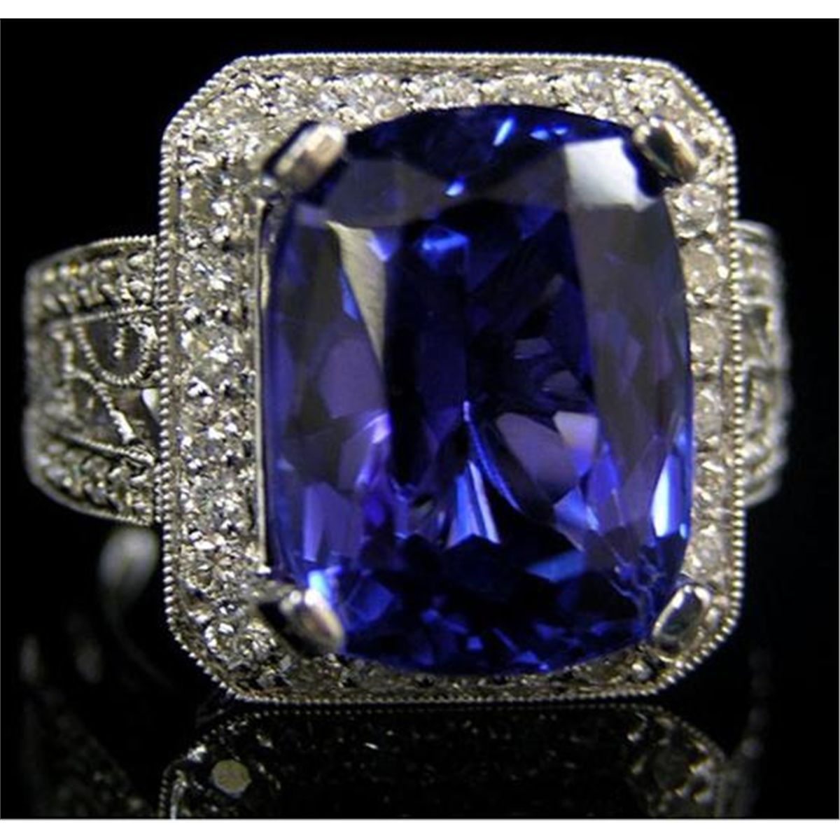 Vintage and extraordinary Tanzanite Rin & 18K White Gold and g, contains one amazing emerald cut natual tanzanite weighing approximately 13.29 carats and round brilliant diamonds weighing approximately .76 carats.