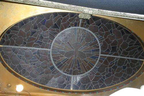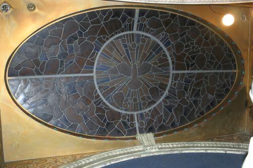 CEILING STAINED GLASS. This exquisite reproduction, done in a smaller scale, is of the stained glass displayed on the main altar of St. Peter's Cathedral in Rome, Italy.