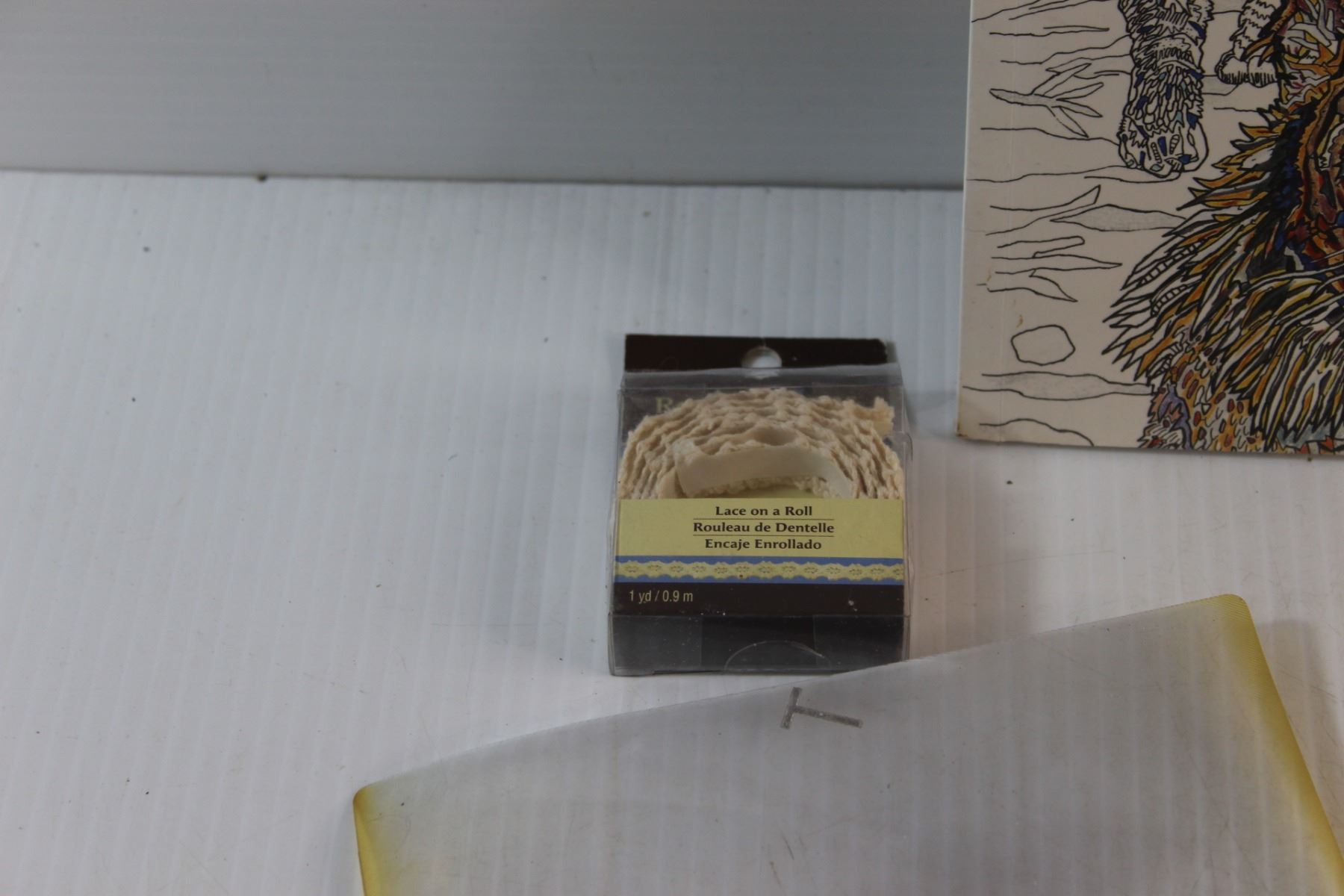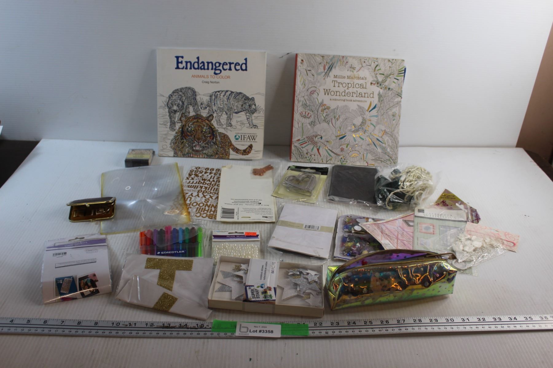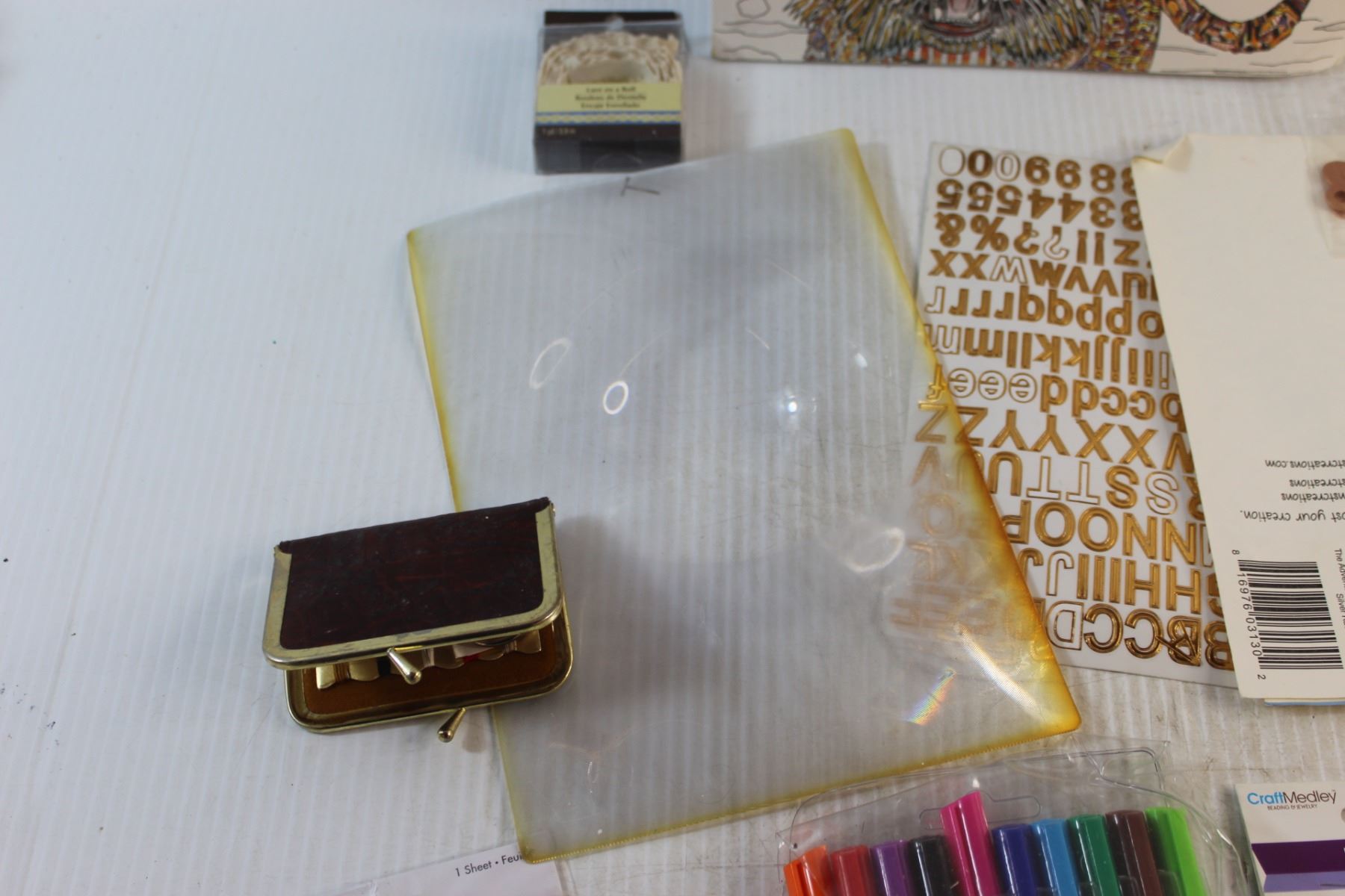 Magnifying Sheet, Pearl Beads, Sewing Set, Coloring Books, Gem Stickers, Lace on a Roll and Assorted Items